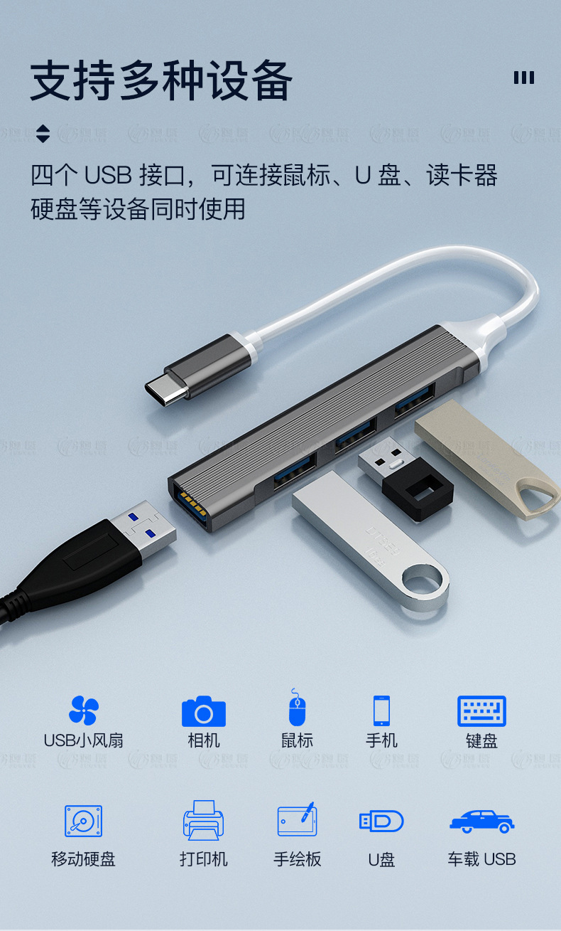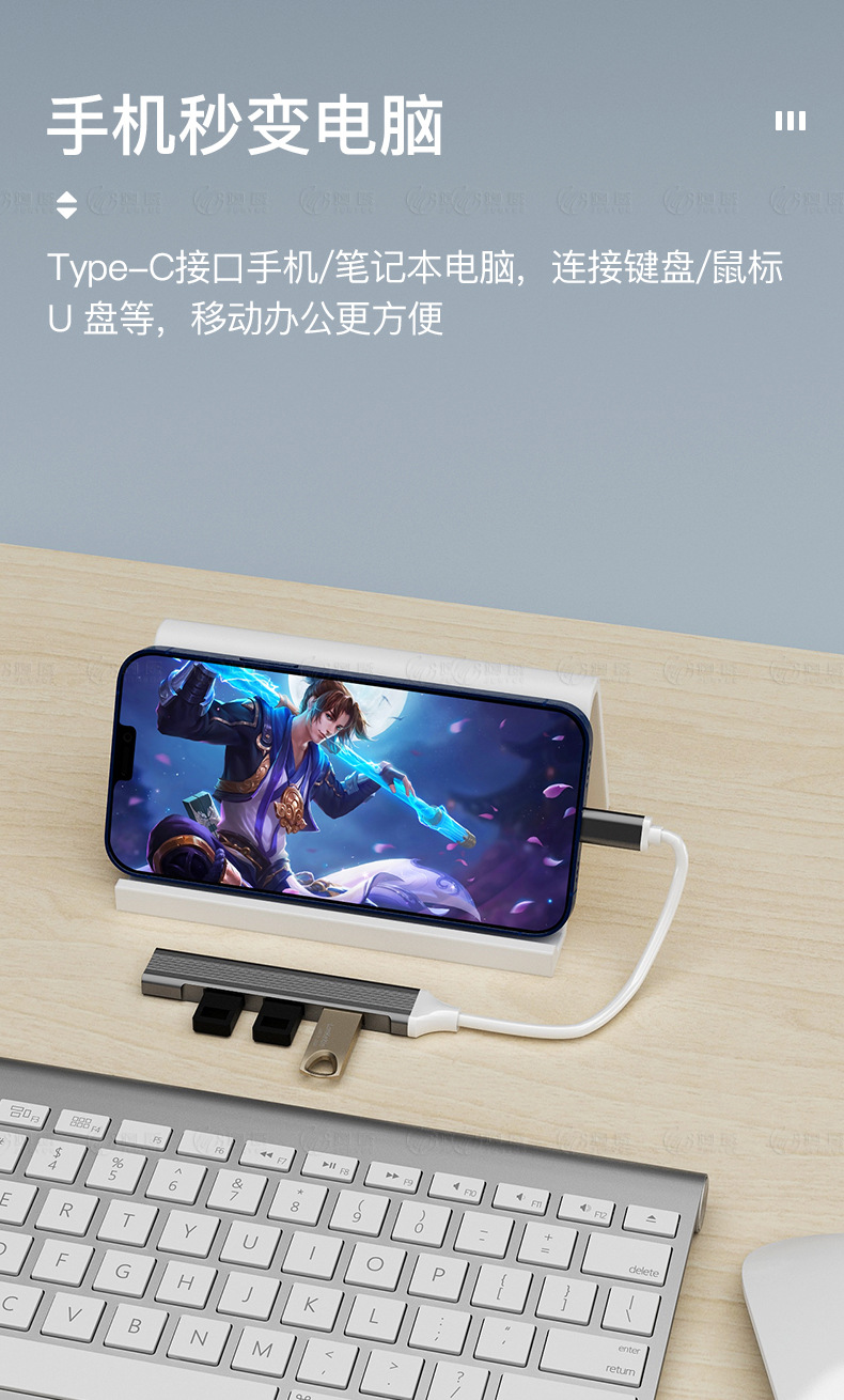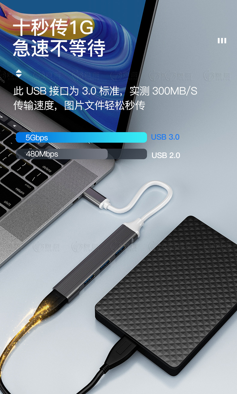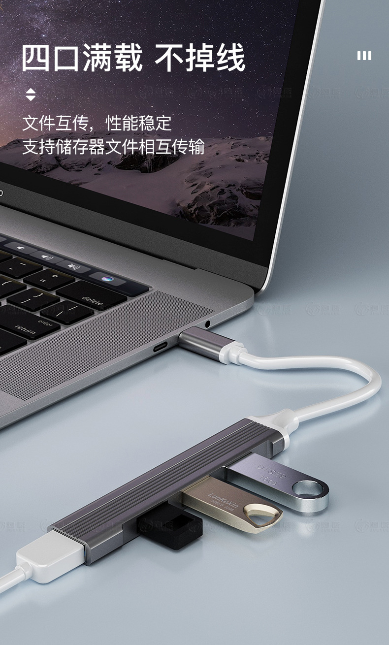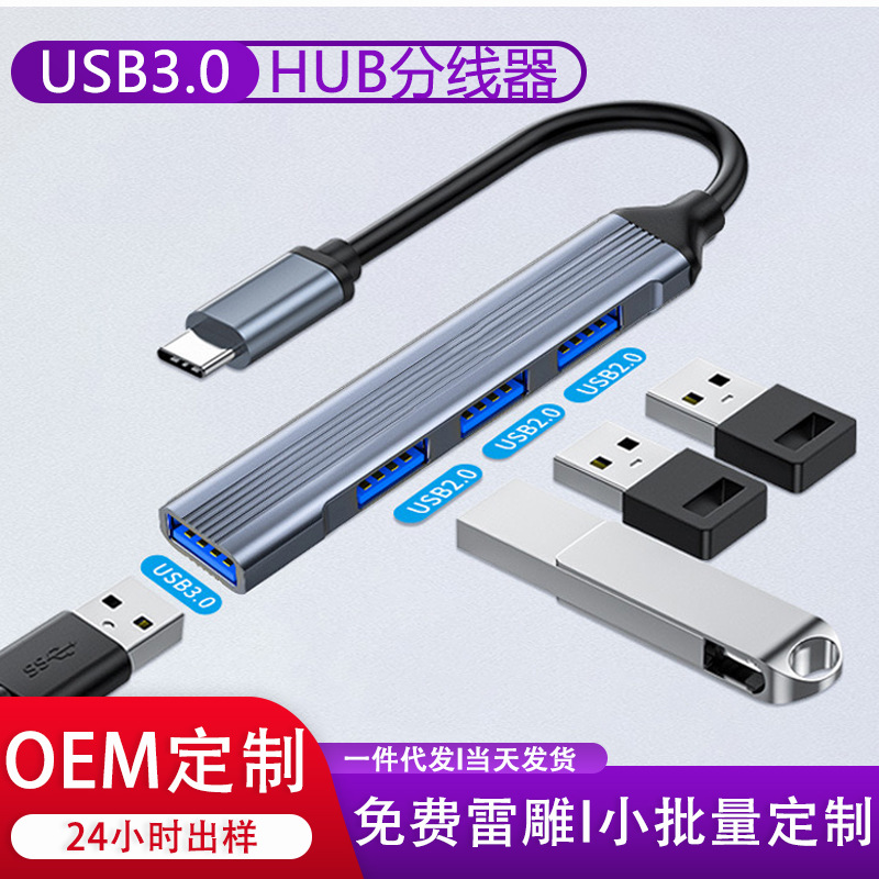 개인 모델 초박형 usb3.0허브 스플리터 타입 c 도킹 스테이션 1 대 4 미니 컴퓨터 휴대 전화 허브스토어 가기