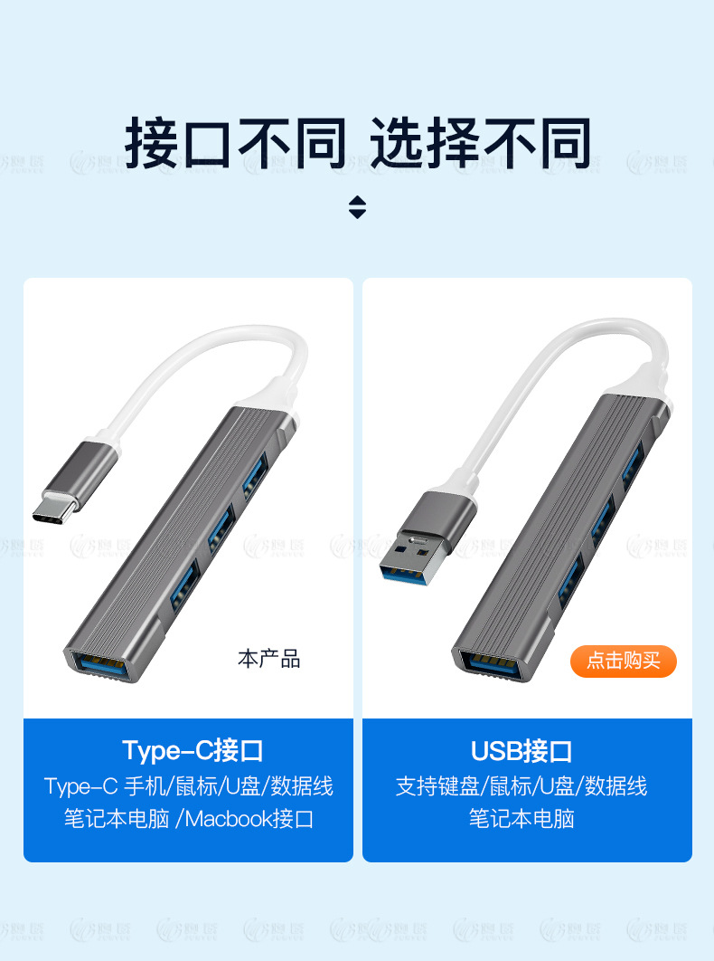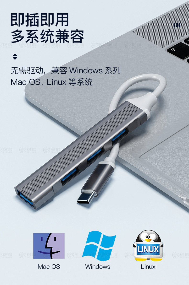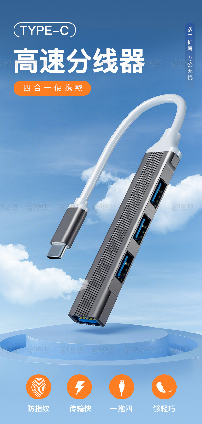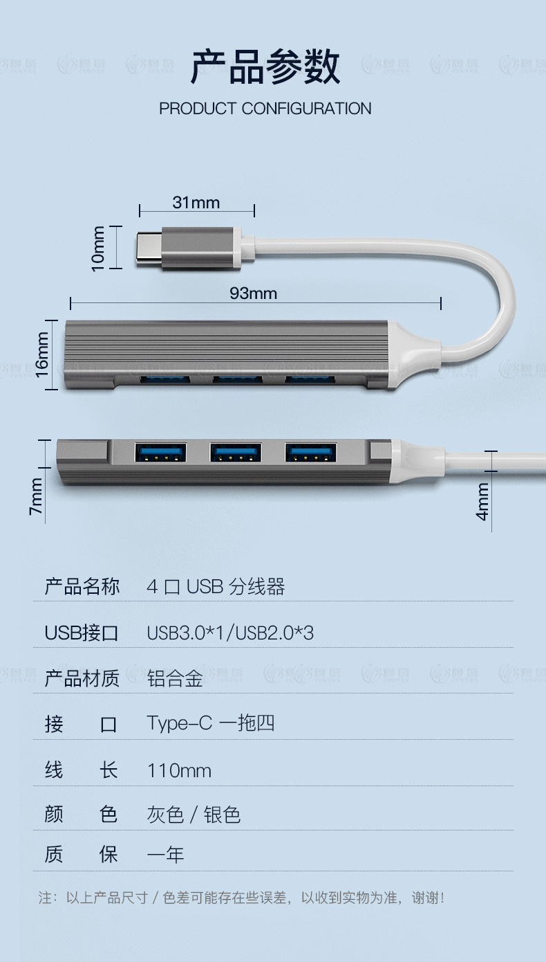 개인 모델 초박형 usb3.0허브 스플리터 타입 c 도킹 스테이션 1 대 4 미니 컴퓨터 휴대 전화 허브스토어 가기