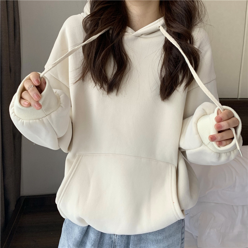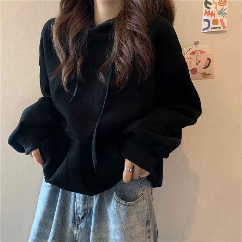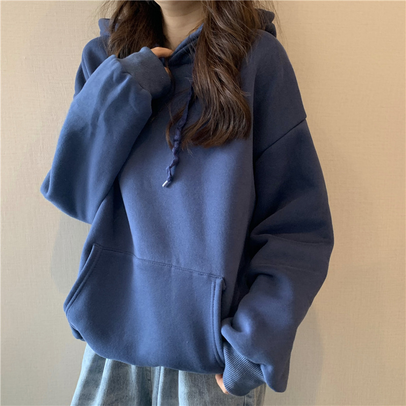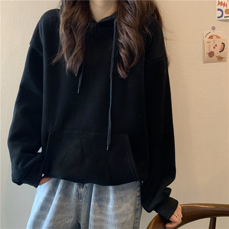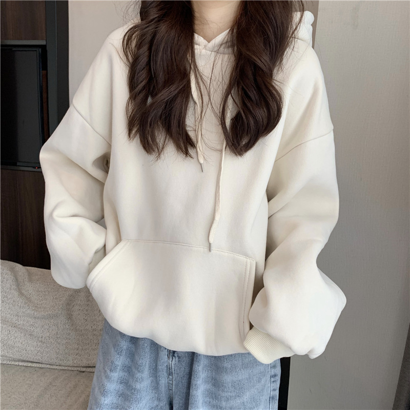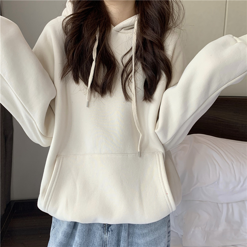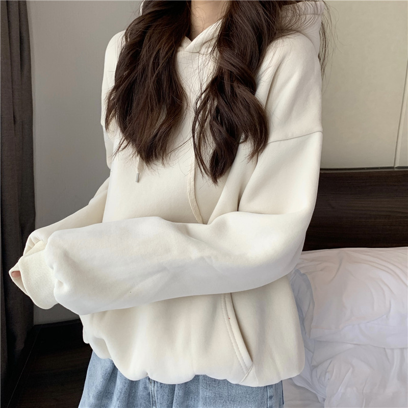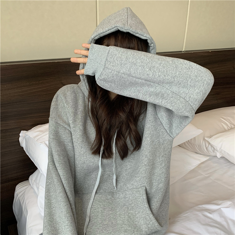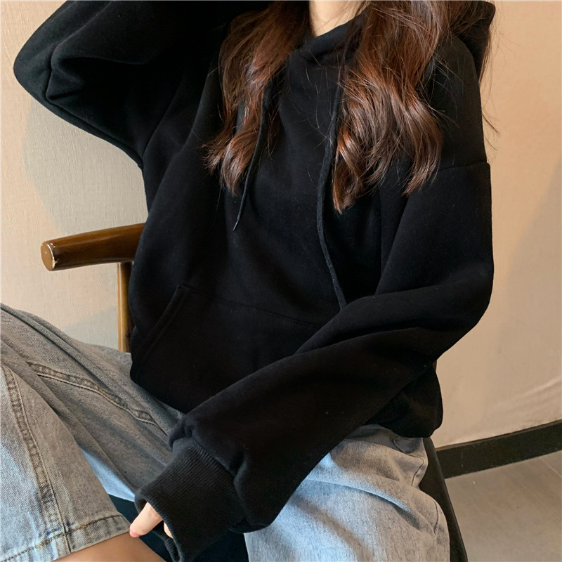 솔리드 컬러 후드 스웨트 셔츠 여성의 느슨한 봄과 가을 2025 새로운 한국 스타일 Ins 트렌디 탑 긴 소매 코트 얇은 벨벳스토어 가기