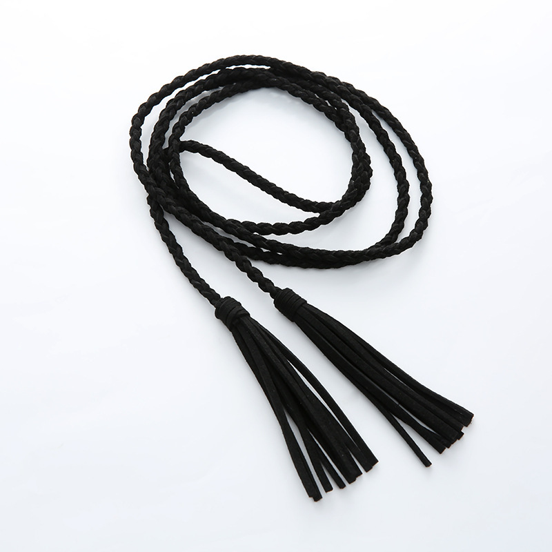 跨境时尚简约编织流苏黑色腰带女学生风配连衣裙牛仔装饰腰链批发