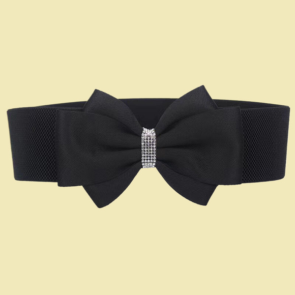 蝴蝶结腰带镶钻甜美连衣裙领结装饰皮带百搭松紧弹力腰封女韩版
