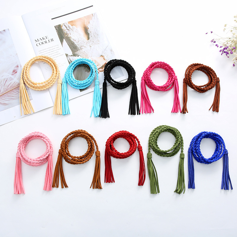 크로스 보더 새로운 술 여성용 얇은 벨트 크리에이티브 허리 로프 패션 조커 스커트 한국 벨벳 술 벨트 여성 도매스토어 가기