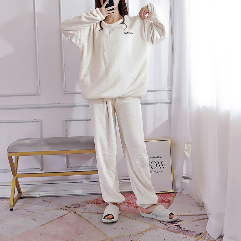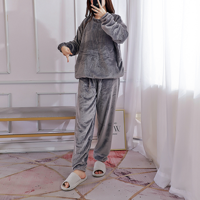 플란넬 잠옷 여성 플러스 지방 플러스 사이즈 320kg 통통녀 세트 산호 양털 패딩 따뜻한 가정 의류 가을과 겨울스토어 가기