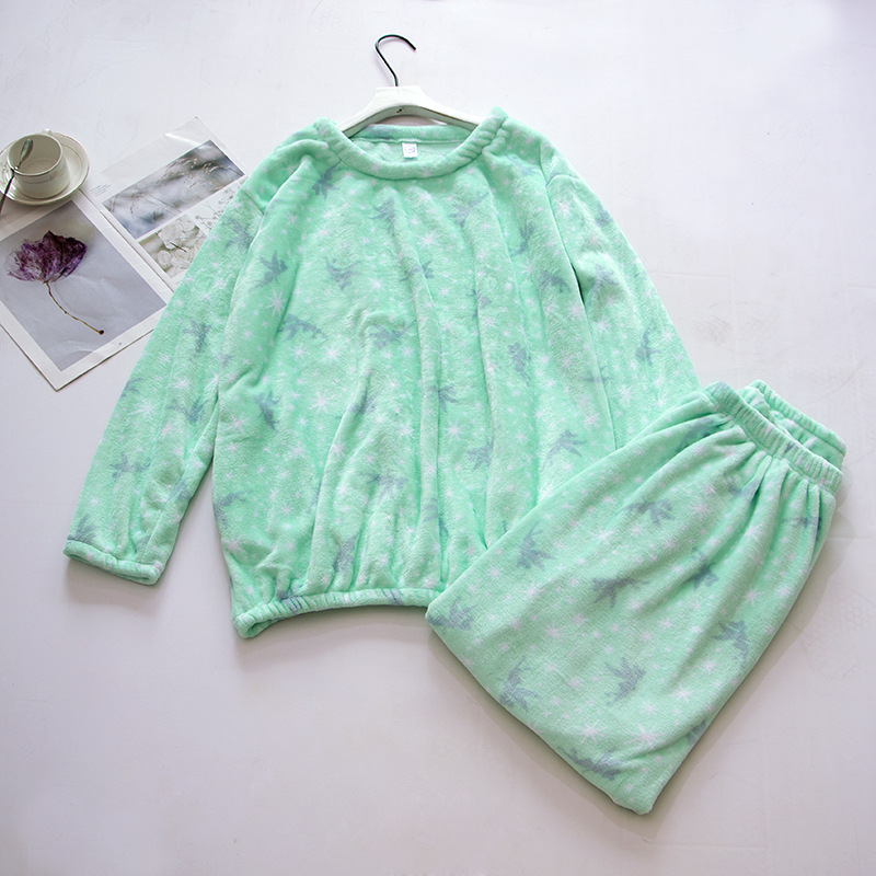 플란넬 잠옷 여성 플러스 지방 플러스 사이즈 320kg 통통녀 세트 산호 양털 패딩 따뜻한 가정 의류 가을과 겨울