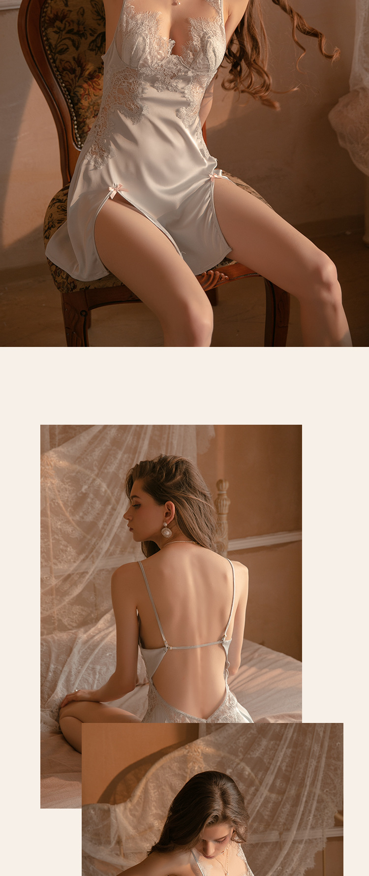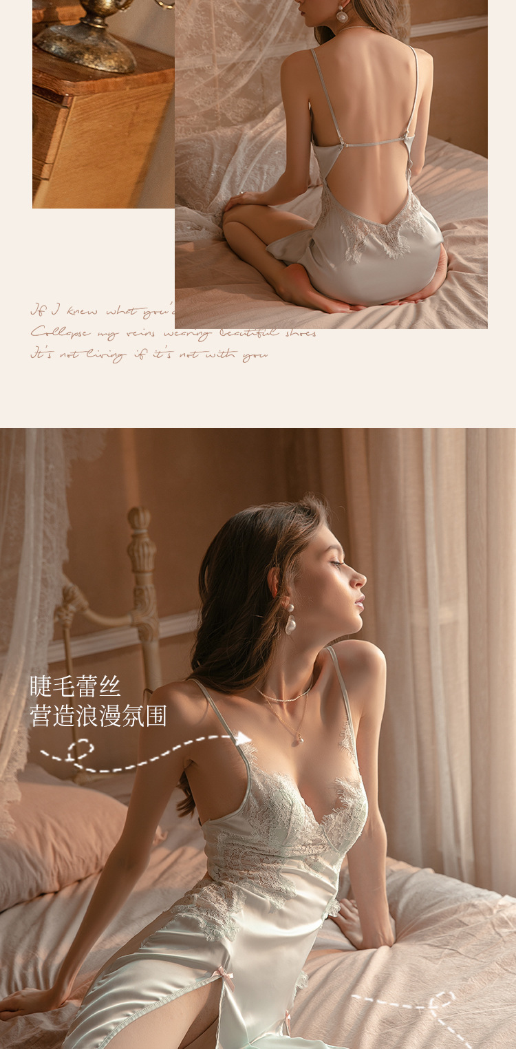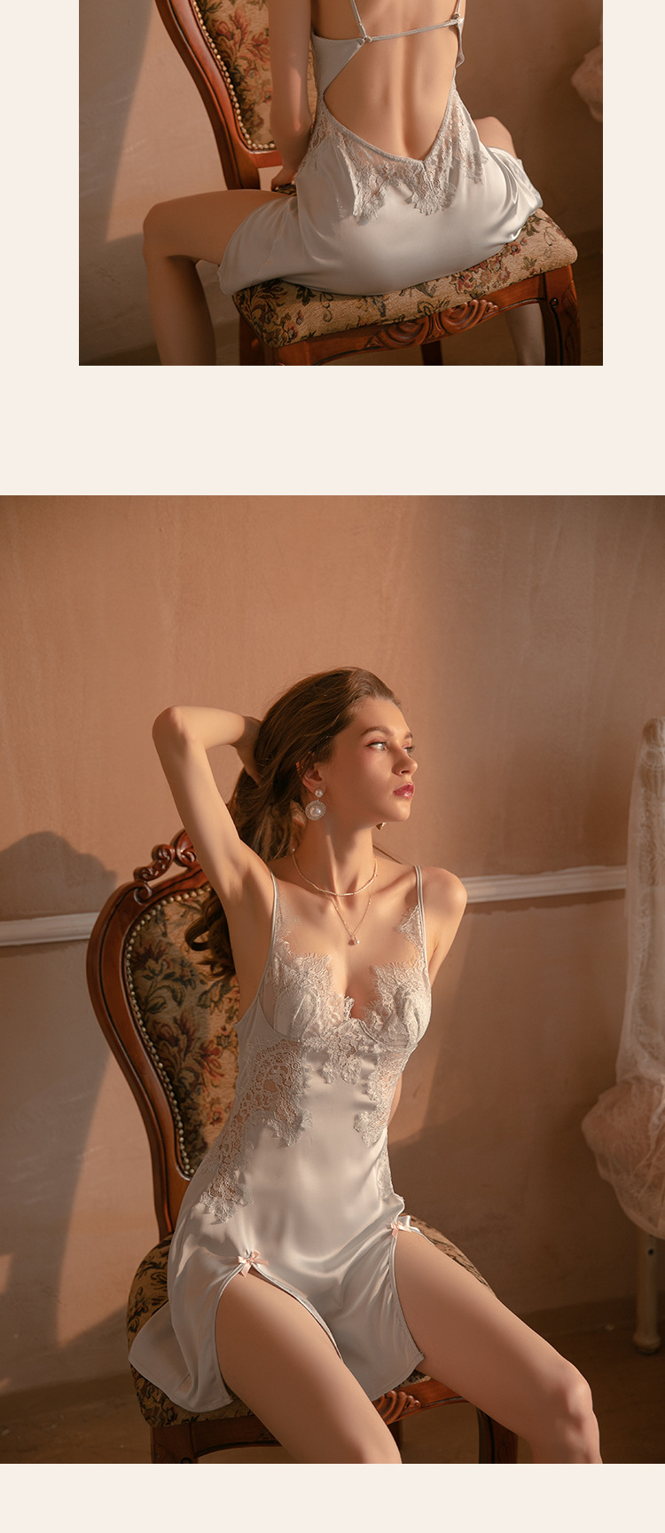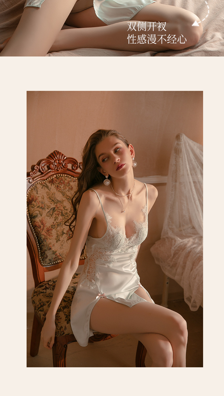 프랑스 스타일 섹시한 얇은 슬링 파자마 여성 여름 레이스 관점 나이트 드레스 부드러운 아이스 실크 유행 홈 의류스토어 가기