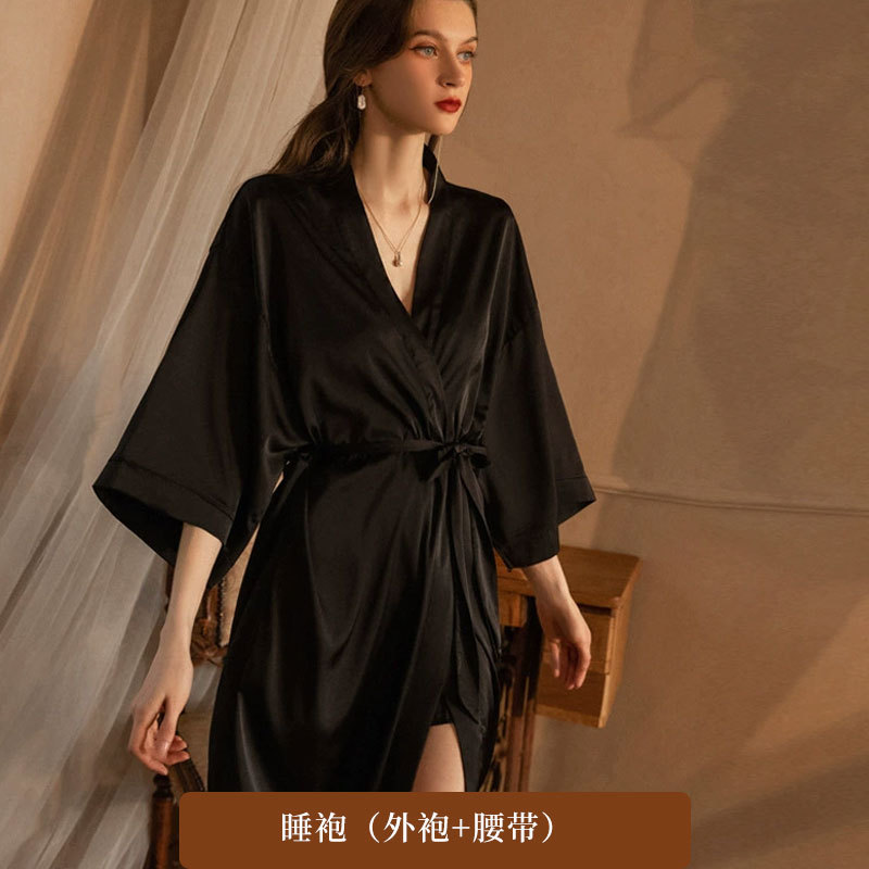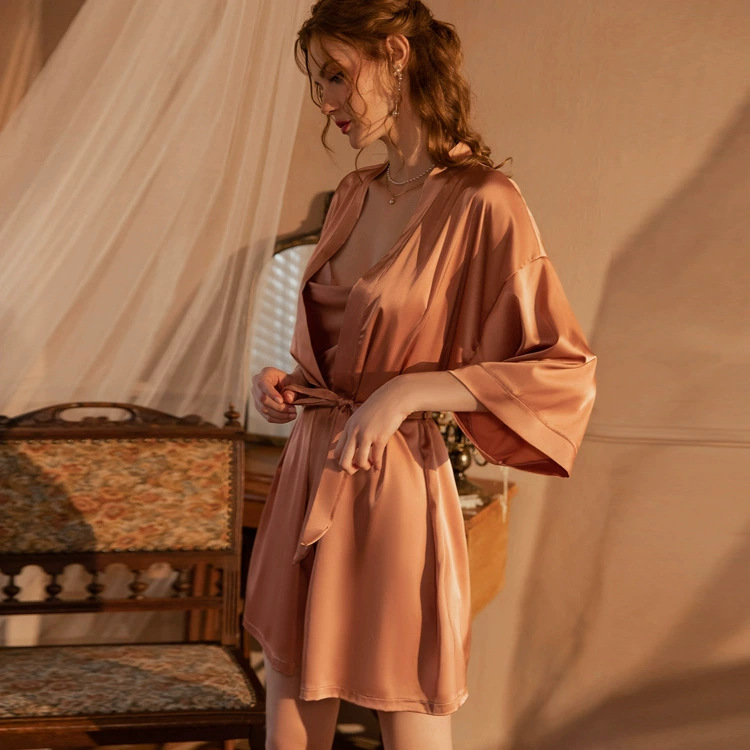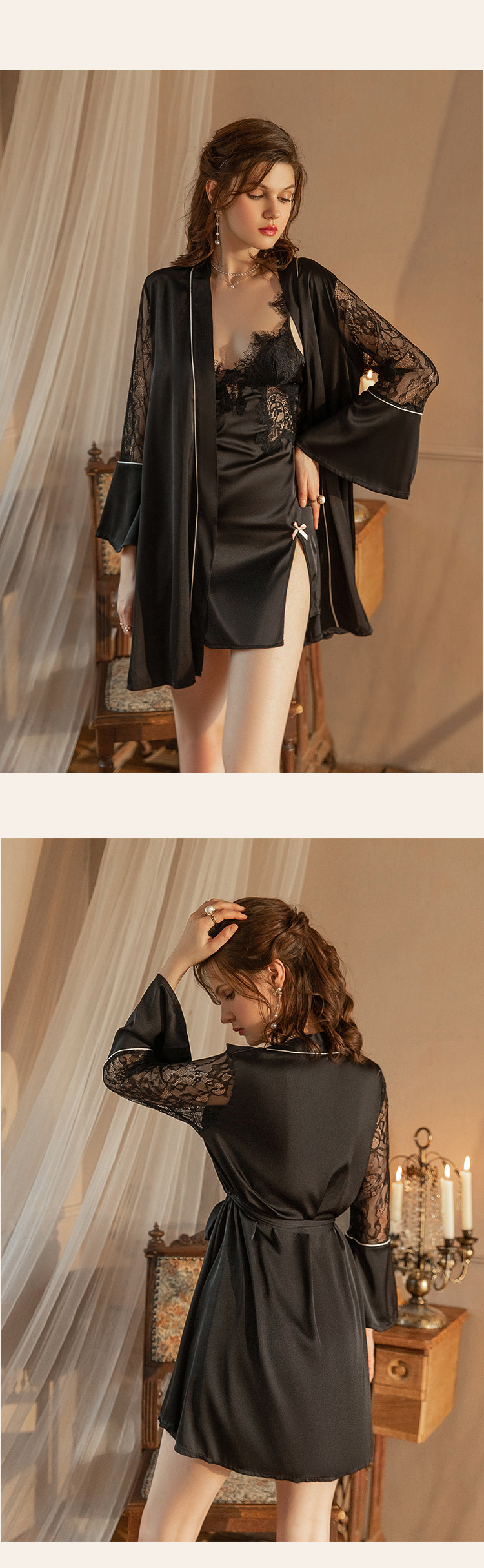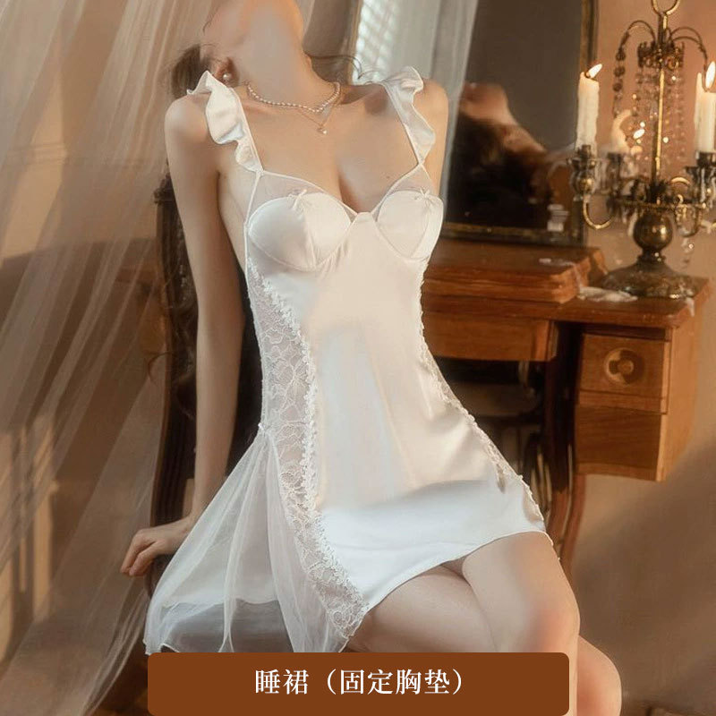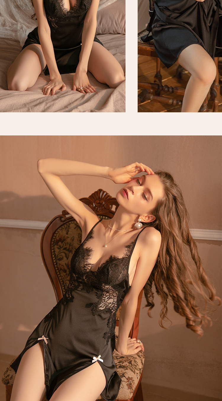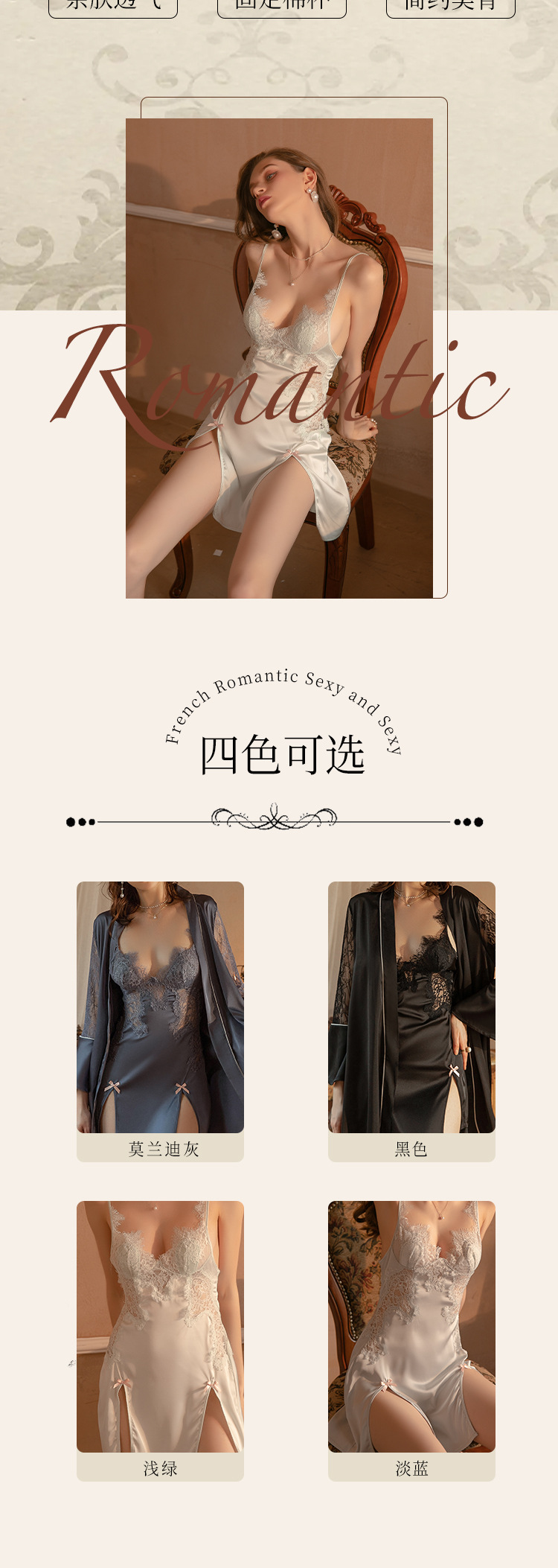 프랑스 스타일 섹시한 얇은 슬링 파자마 여성 여름 레이스 관점 나이트 드레스 부드러운 아이스 실크 유행 홈 의류스토어 가기
