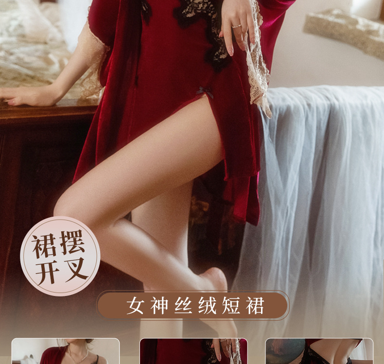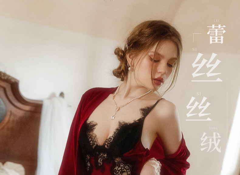 • 버건디 벨벳 (잠옷 + 고정 가슴 패드)
