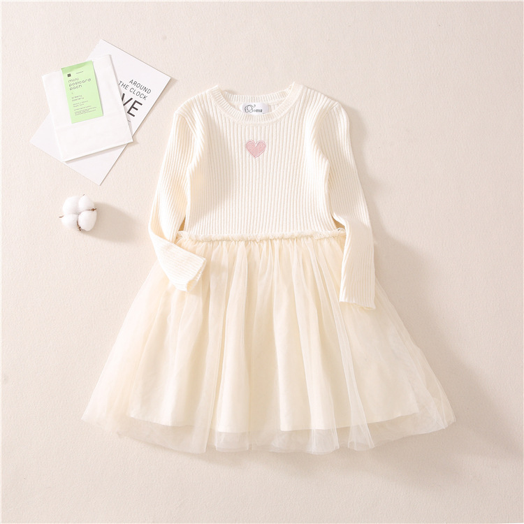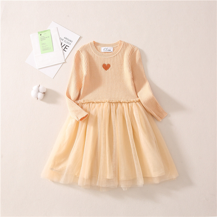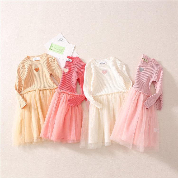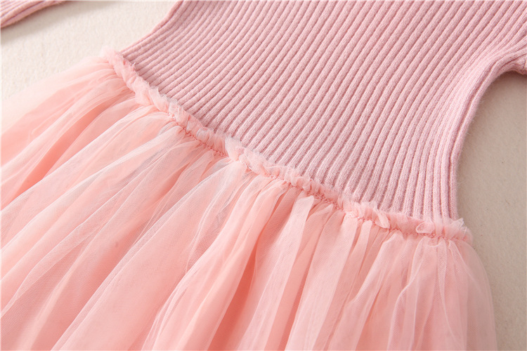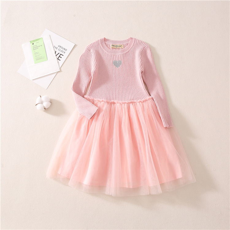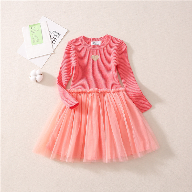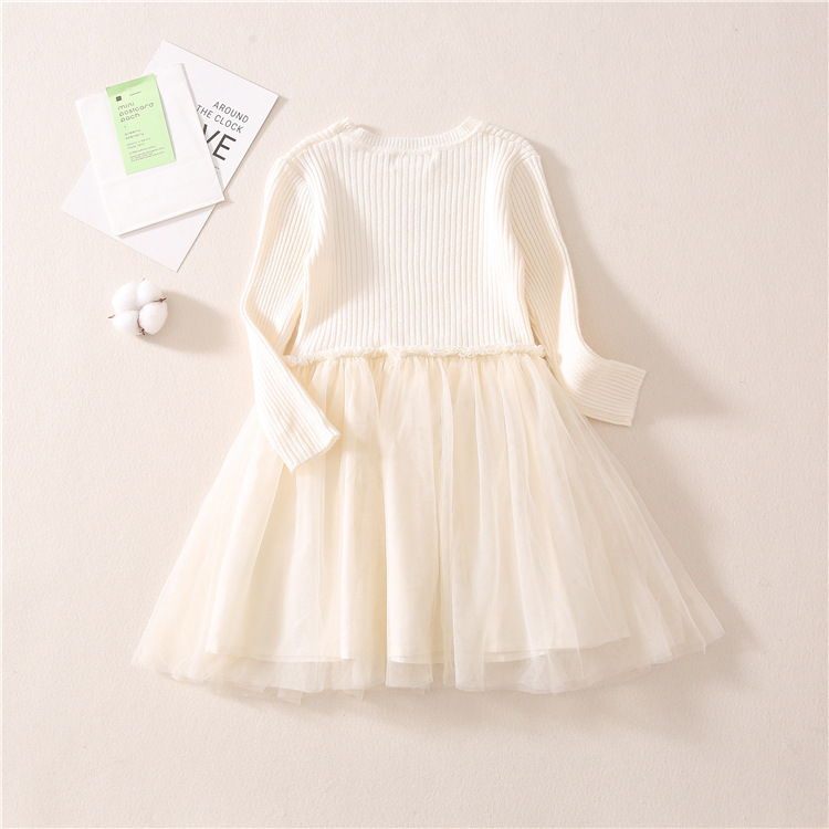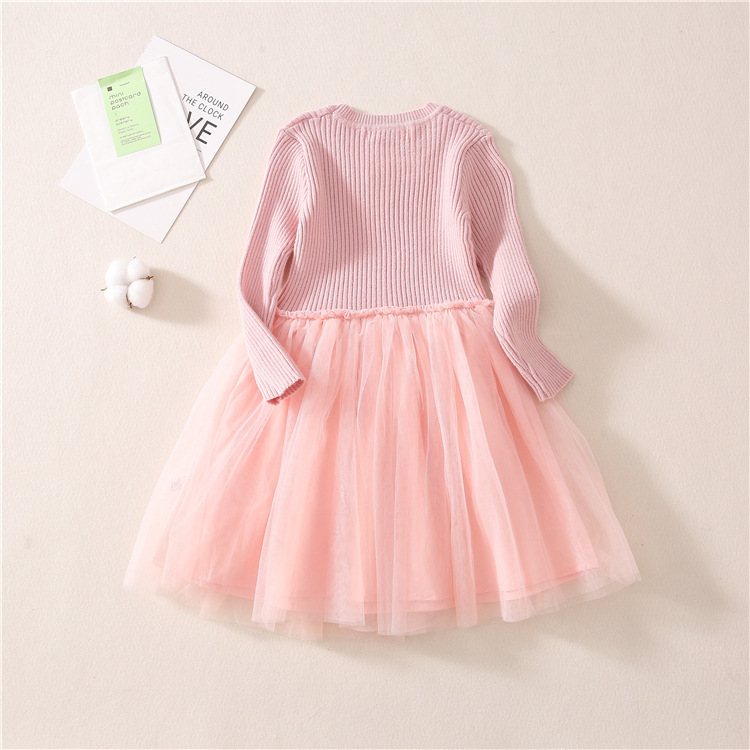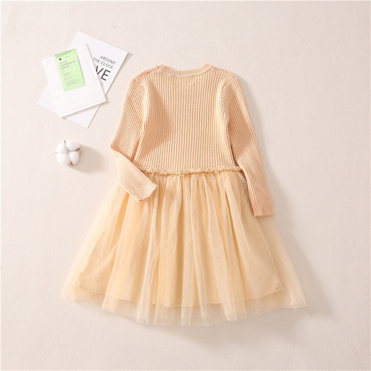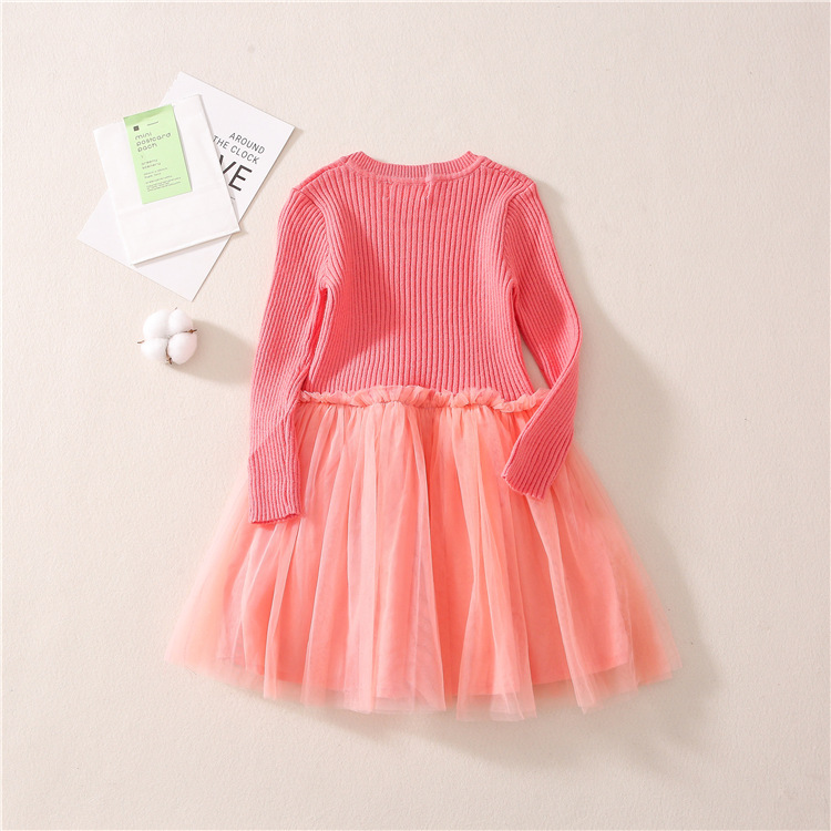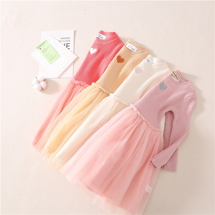 여아 니트 긴팔 공주 원피스 아동복 가을과 겨울 세련된 단색 바느질 용기 원피스 여아 어린이 원피스 어린이 원피스 패션스토어 가기