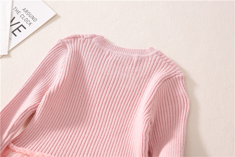 여아 니트 긴팔 공주 원피스 아동복 가을과 겨울 세련된 단색 바느질 용기 원피스 여아 어린이 원피스 어린이 원피스 패션