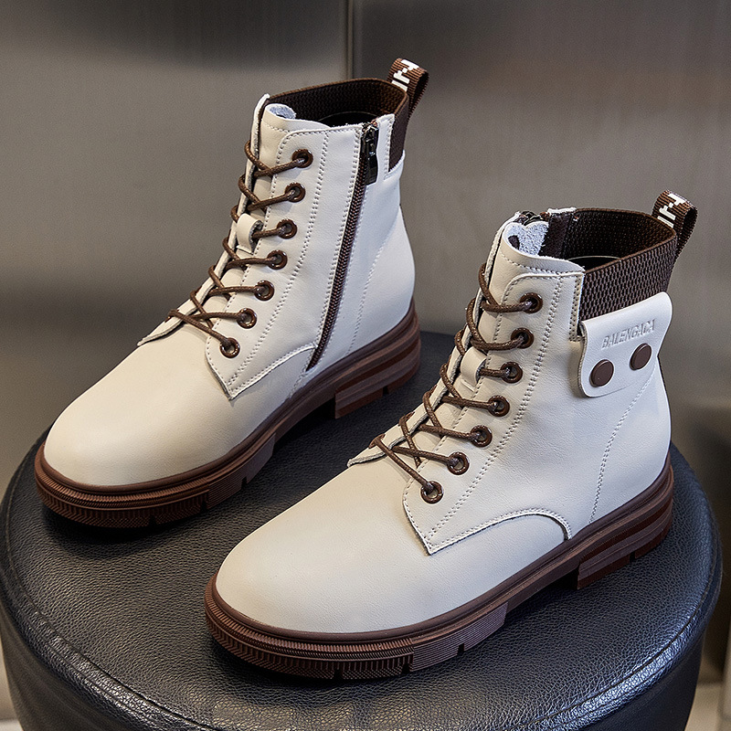정품 가죽 마틴 부츠 여자 2024 새로운 가을 및 겨울 올 매치 여자 부츠 두꺼운 하단 샤넬 스타일 여성용 짧은 중간 길이의 부츠스토어 가기