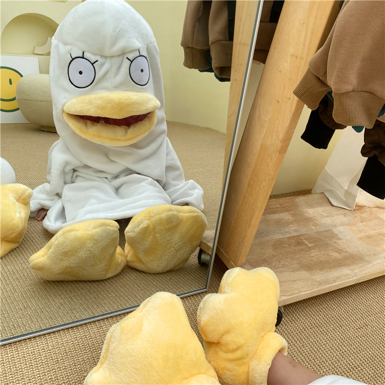 뜨거운 판매 상록 겨울 양면 플란넬 두꺼운 부모-자식 잠옷 소년과 소녀 만화 오리 재미있는 샴스토어 가기