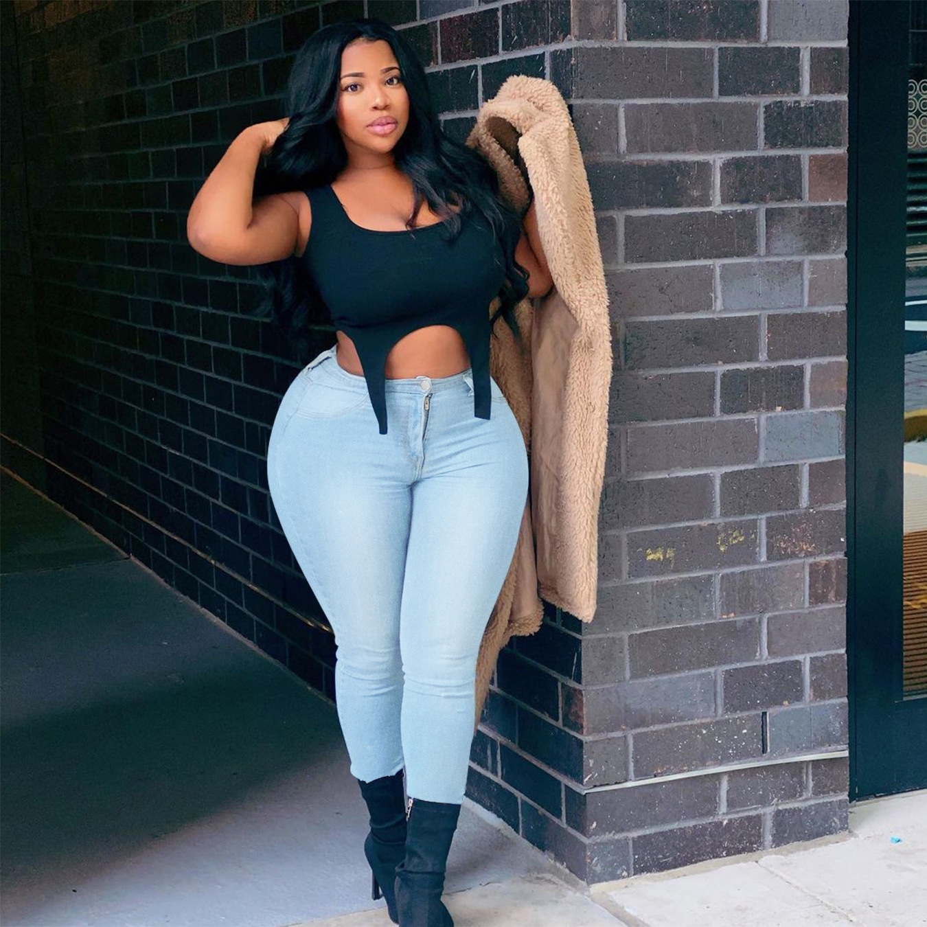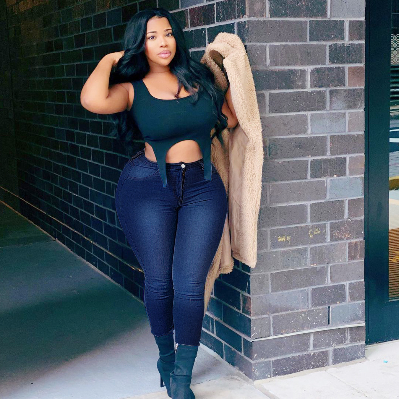 많은 수의 재고 크로스 국경 아마존 소원 유럽과 미국 플러스 사이즈 여성 패션 구멍 데님 레깅스 대외 무역 공급