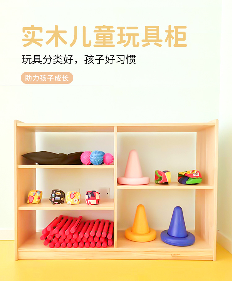 유치원 단단한 나무 5 칸 장난감 캐비닛 Pinus sylvestris 고무 나무 수직 5 칸 캐비닛 어린이 놀이 교구 보관 랙