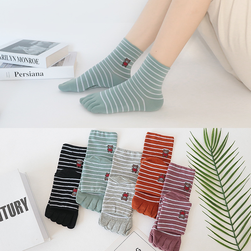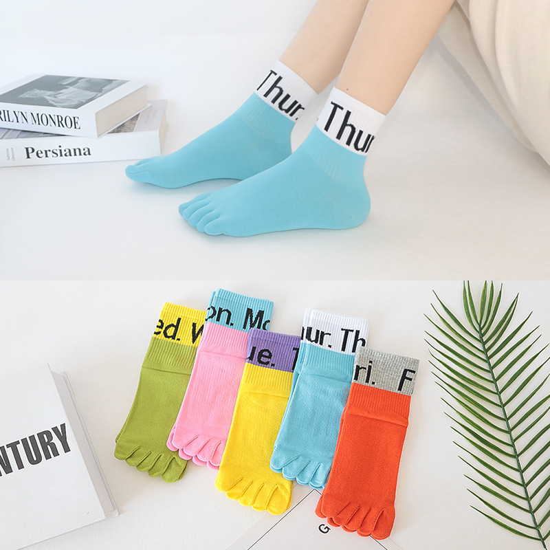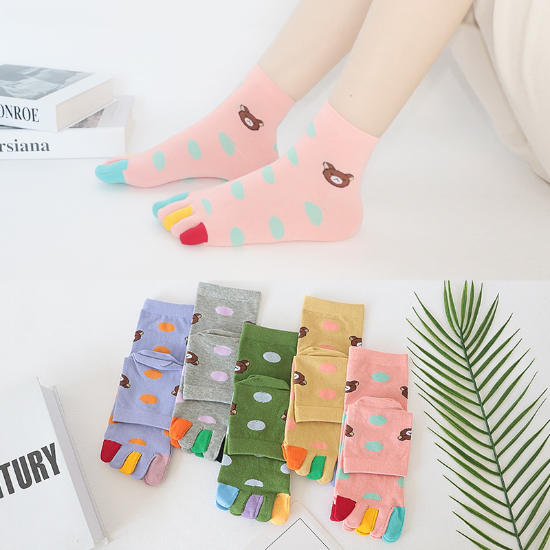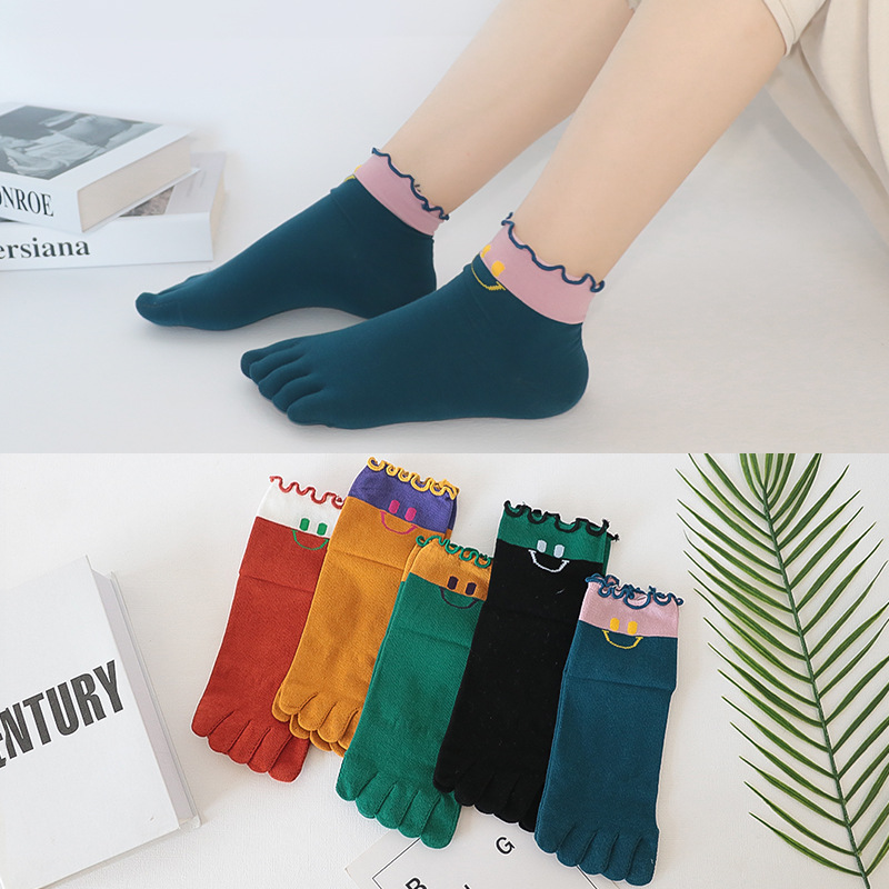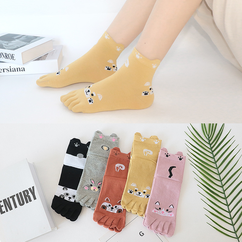 다섯 손가락 양말 여성 단색 면사 탈취제 봄과 가을 얇은 튜브 만화 귀여운 색상 높은 튜브 발가락 양말 도매스토어 가기
