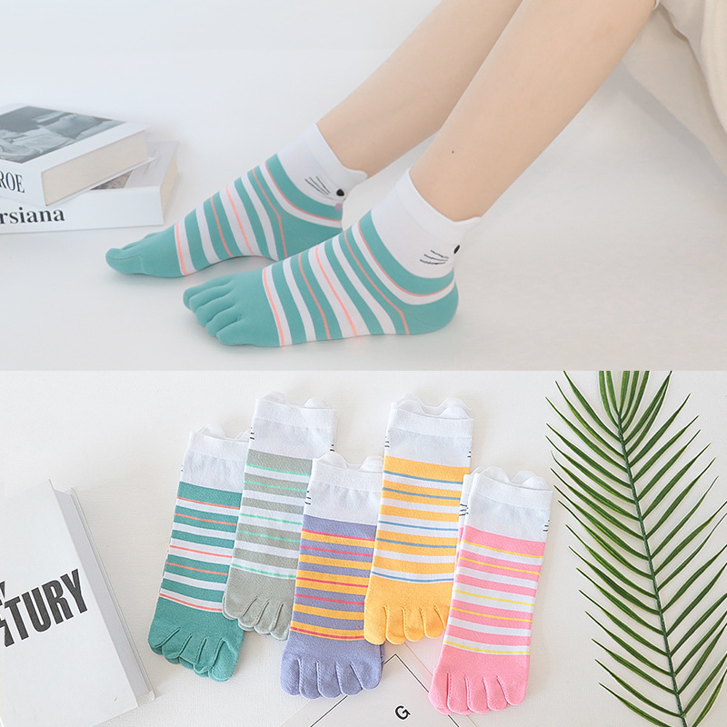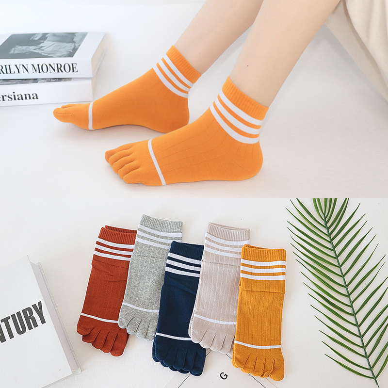 다섯 손가락 양말 여성 단색 면사 탈취제 봄과 가을 얇은 튜브 만화 귀여운 색상 높은 튜브 발가락 양말 도매