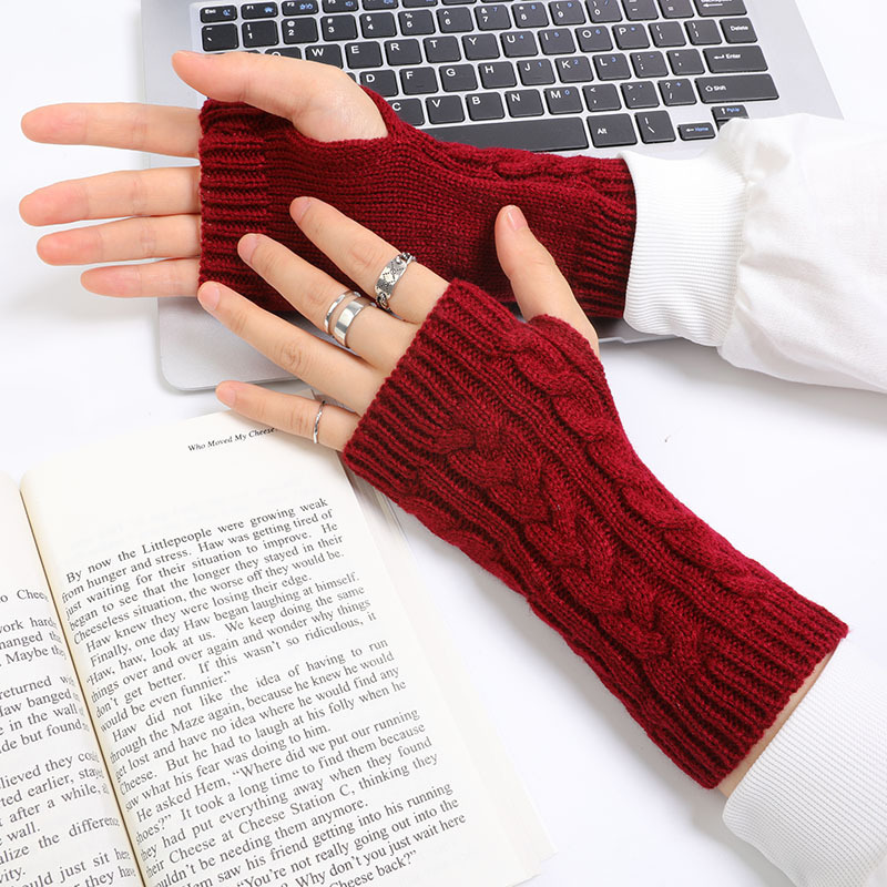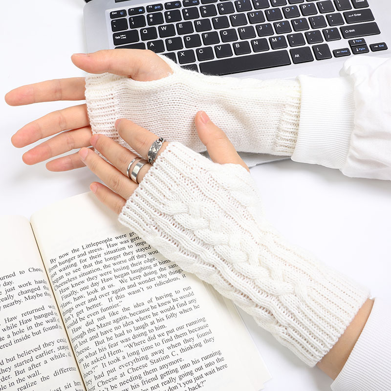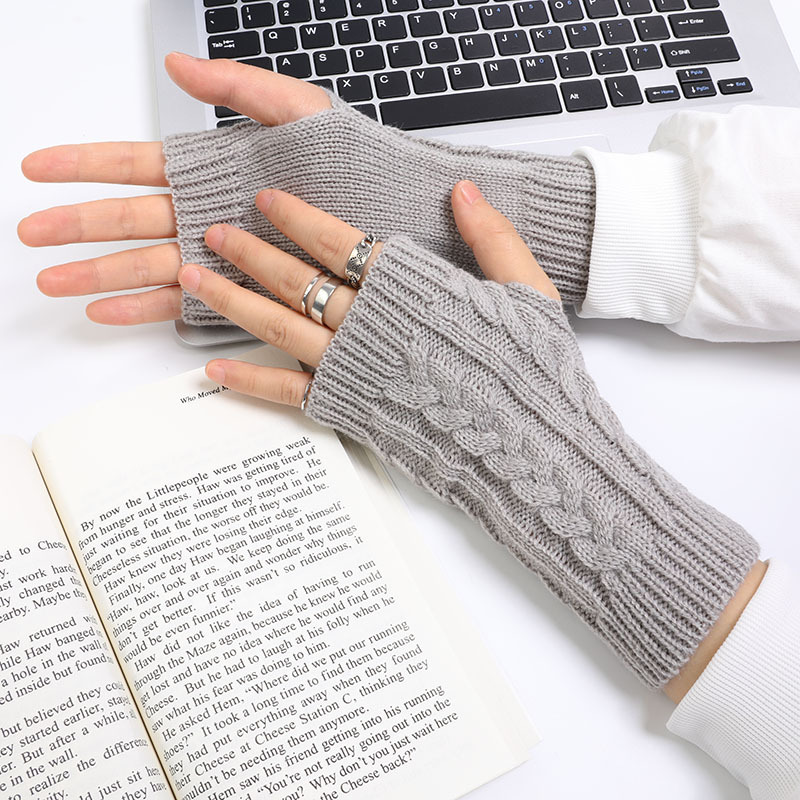 가을과 겨울 남성과 여성의 짧은 트위스트 패션 장갑 한국 반 손가락 니트 손목 가드 울 따뜻한 오픈 손가락 장갑 도매