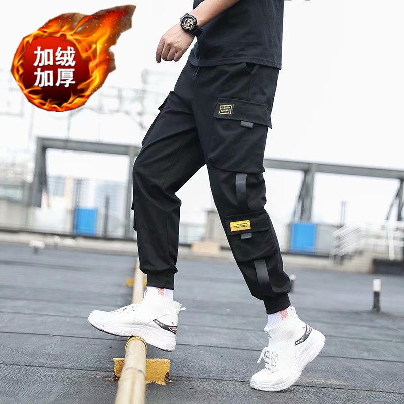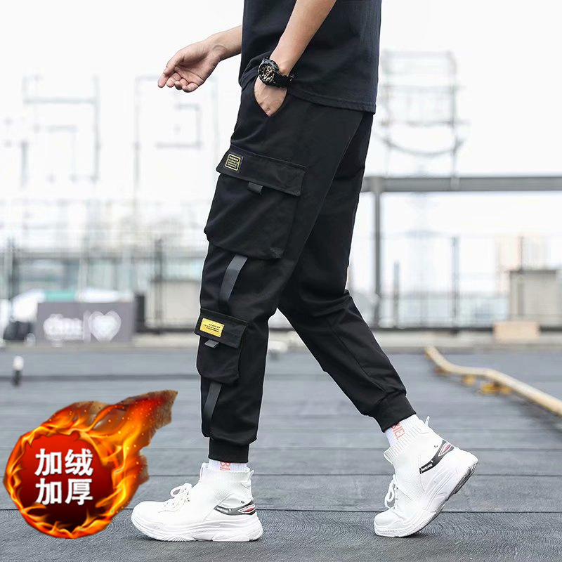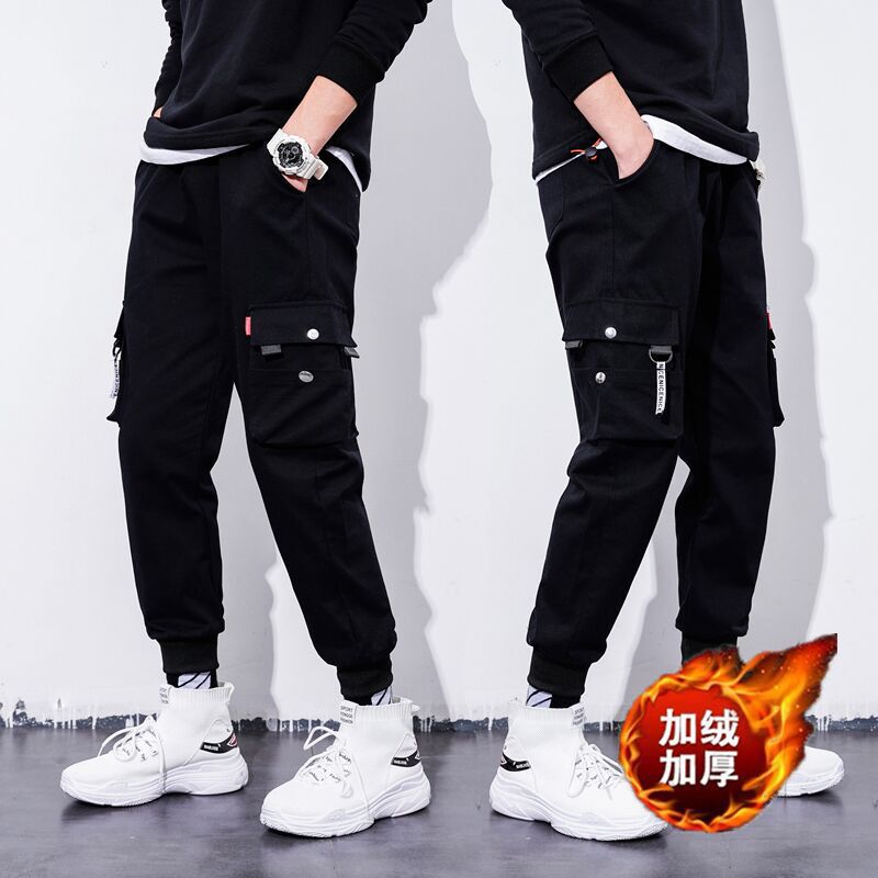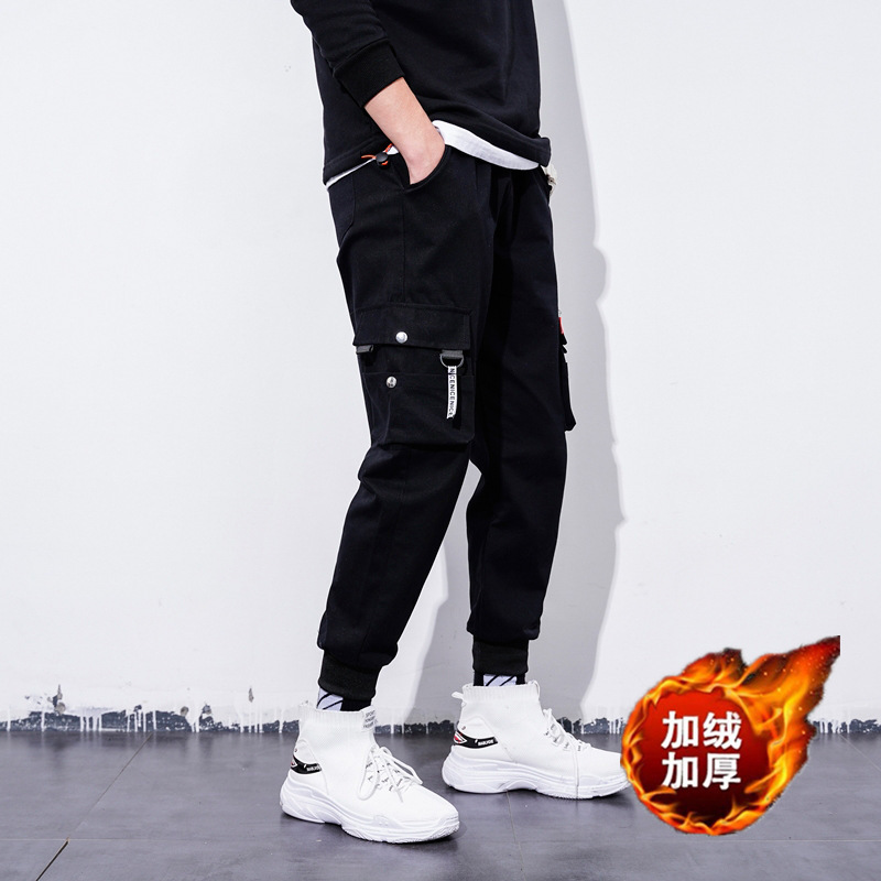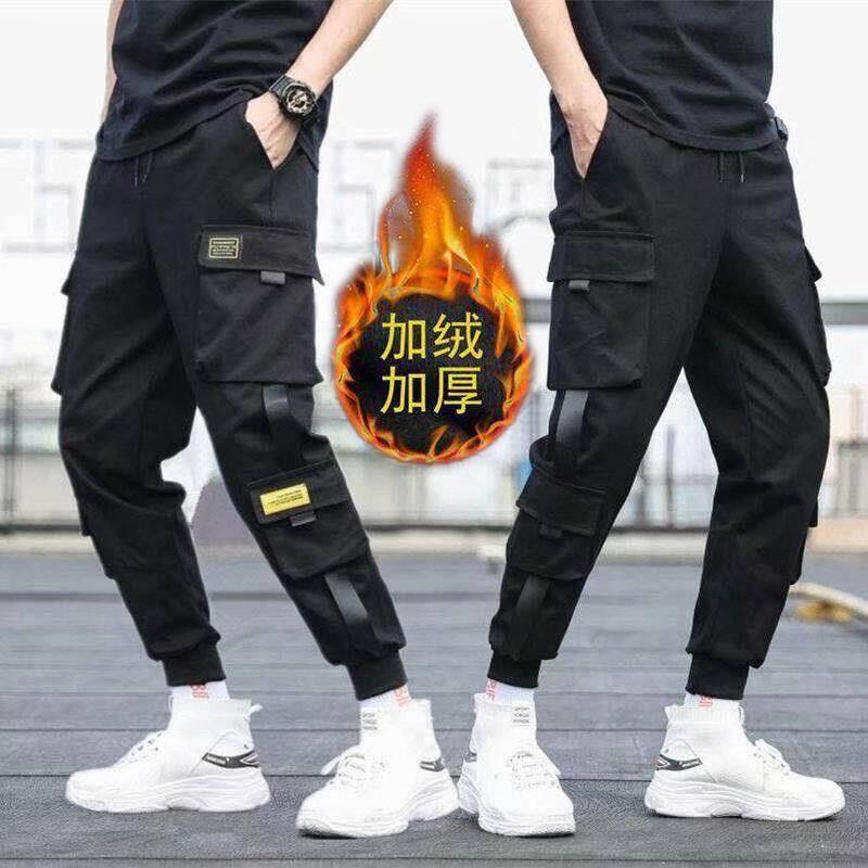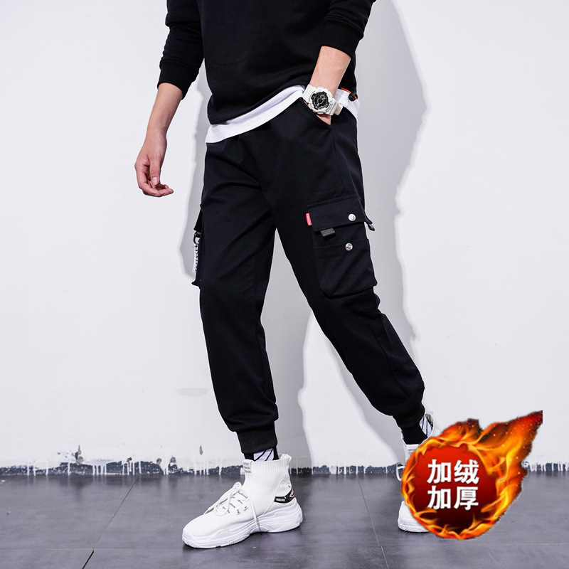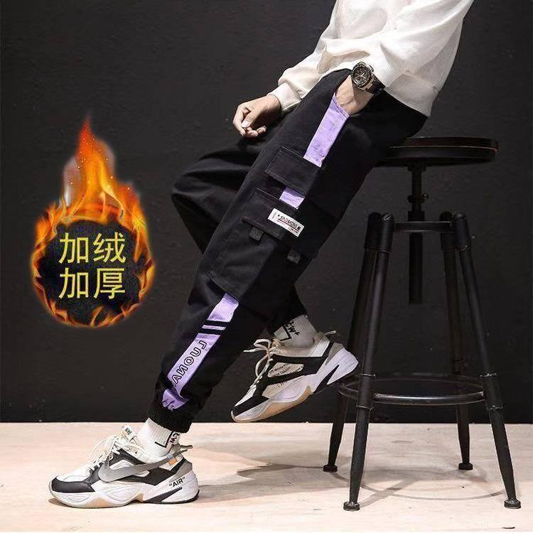 2020 바지 남성 가을과 겨울 기모 한국식 바느질 대비 컬러 트렌드 느슨한 발가락 남성용 긴 바지스토어 가기