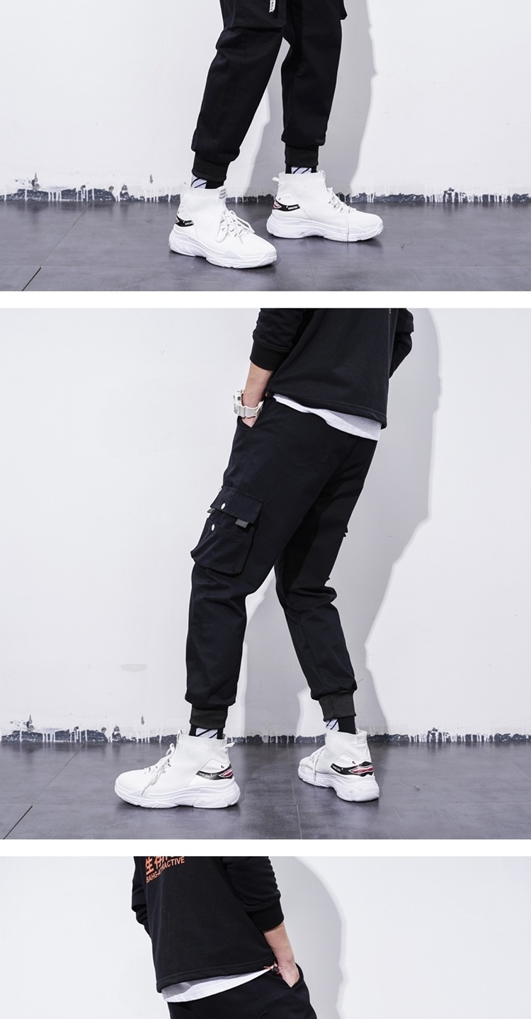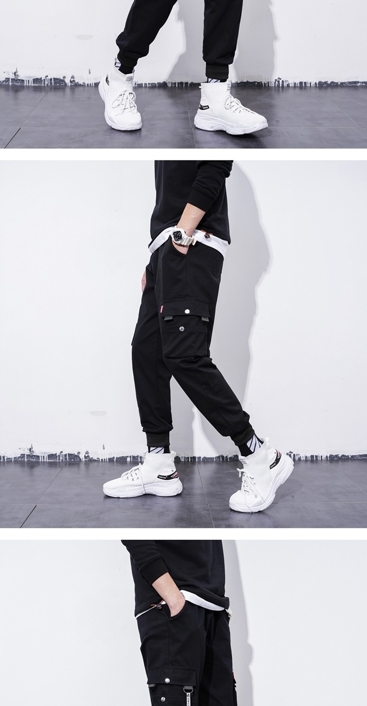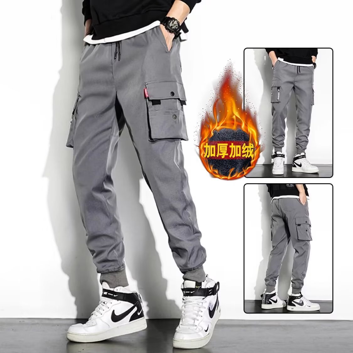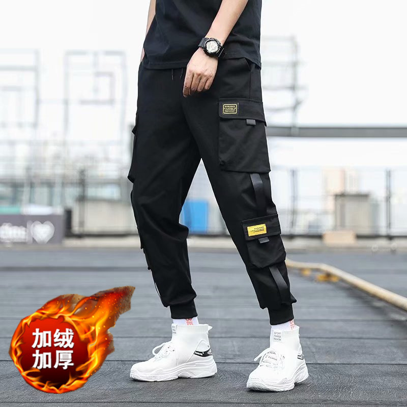 2020 바지 남성 가을과 겨울 기모 한국식 바느질 대비 컬러 트렌드 느슨한 발가락 남성용 긴 바지스토어 가기
