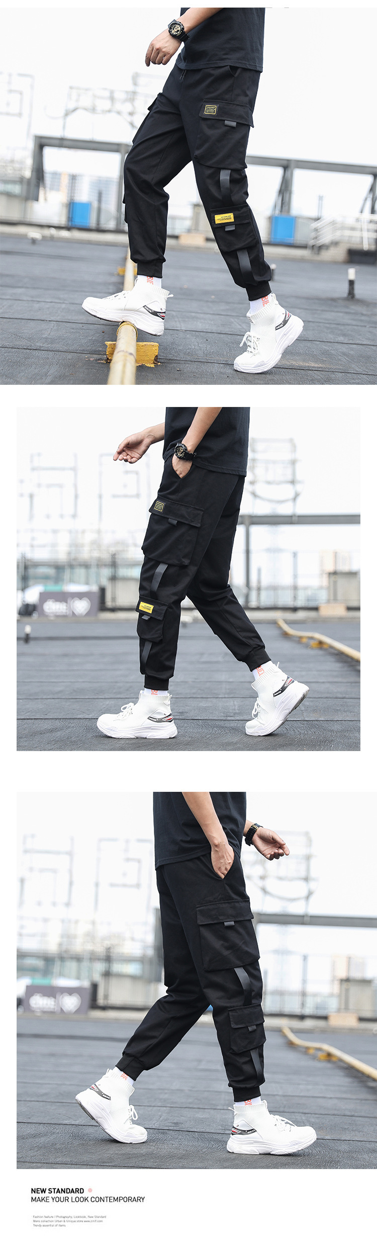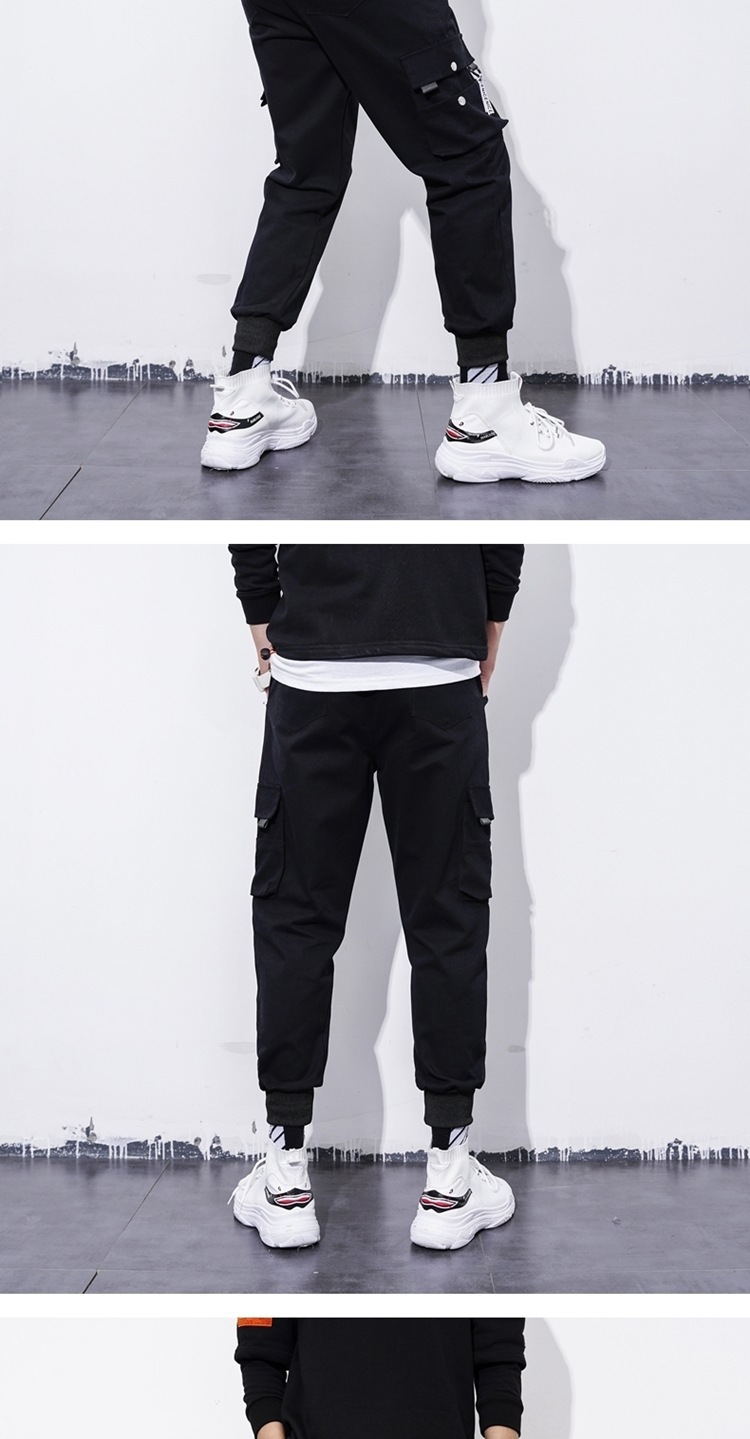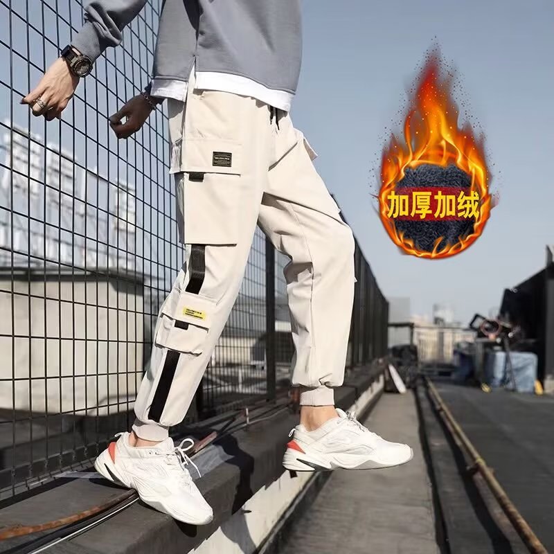 2020 바지 남성 가을과 겨울 기모 한국식 바느질 대비 컬러 트렌드 느슨한 발가락 남성용 긴 바지