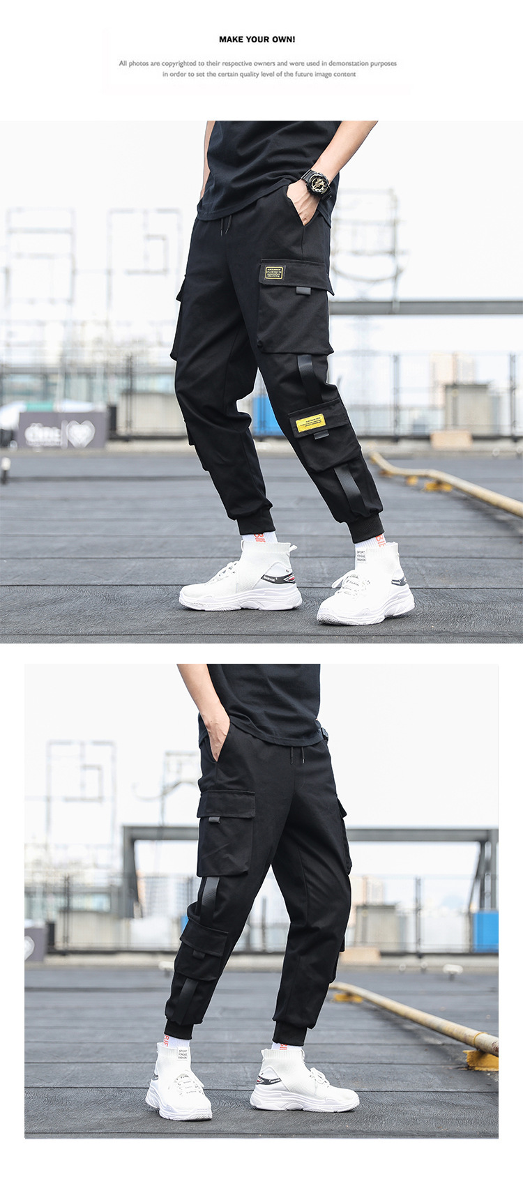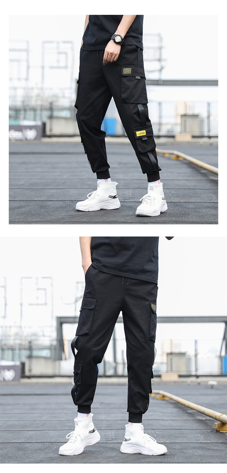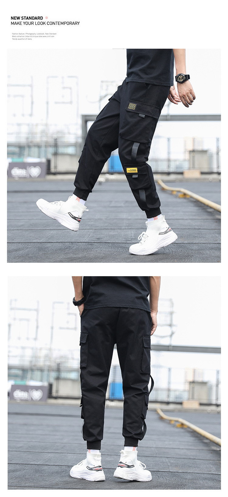 2020 바지 남성 가을과 겨울 기모 한국식 바느질 대비 컬러 트렌드 느슨한 발가락 남성용 긴 바지