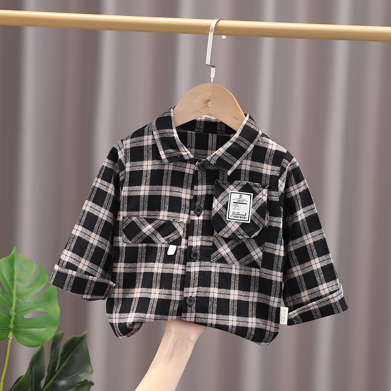 소년 잘 생긴 격자 무늬 셔츠 2025 가을 새로운 스타일 아기 면화 긴팔 셔츠 입체 포켓 디자인 봄과 가을스토어 가기