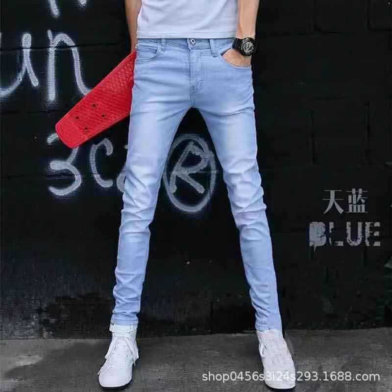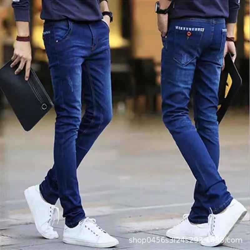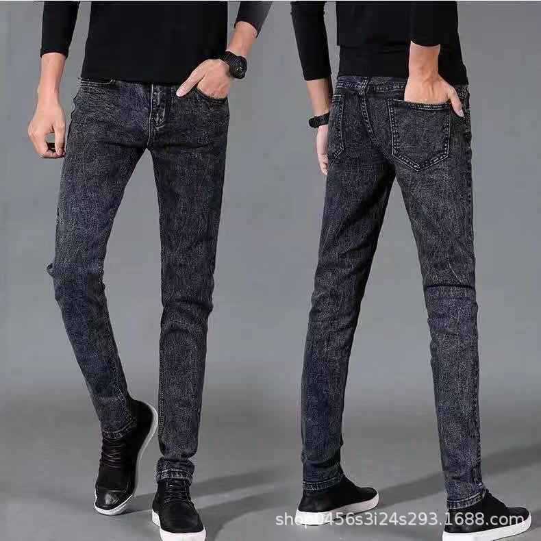 봄과 가을 스트레치 슬림핏 남성 청바지 남성용 블랙 유행 한국 스타일 작은 발 청소년 캐주얼 긴 바지스토어 가기