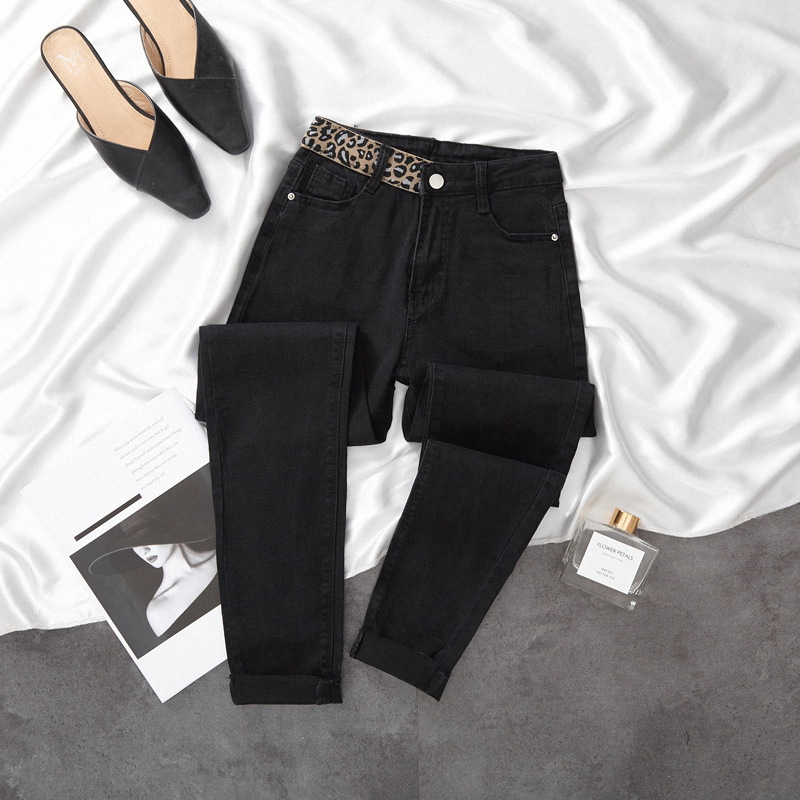 블랙 청바지 여성의 2023 가을 새로운 스티치 하이 웨이스트 슬림 핏 슬리밍 꽉 크롭 펜슬 바지스토어 가기