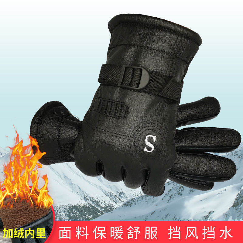 대형 면 가죽 장갑 추가 기모 두꺼운 겨울 손가락 가죽 사이클링 두꺼운 겨울 따뜻한 남자의 앞 유리 장갑스토어 가기