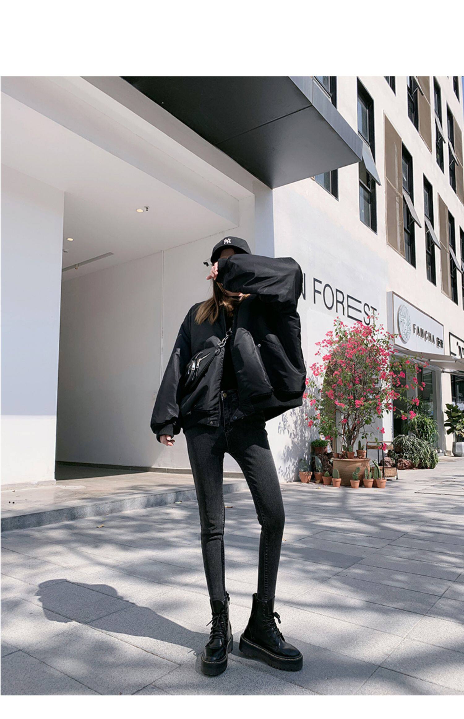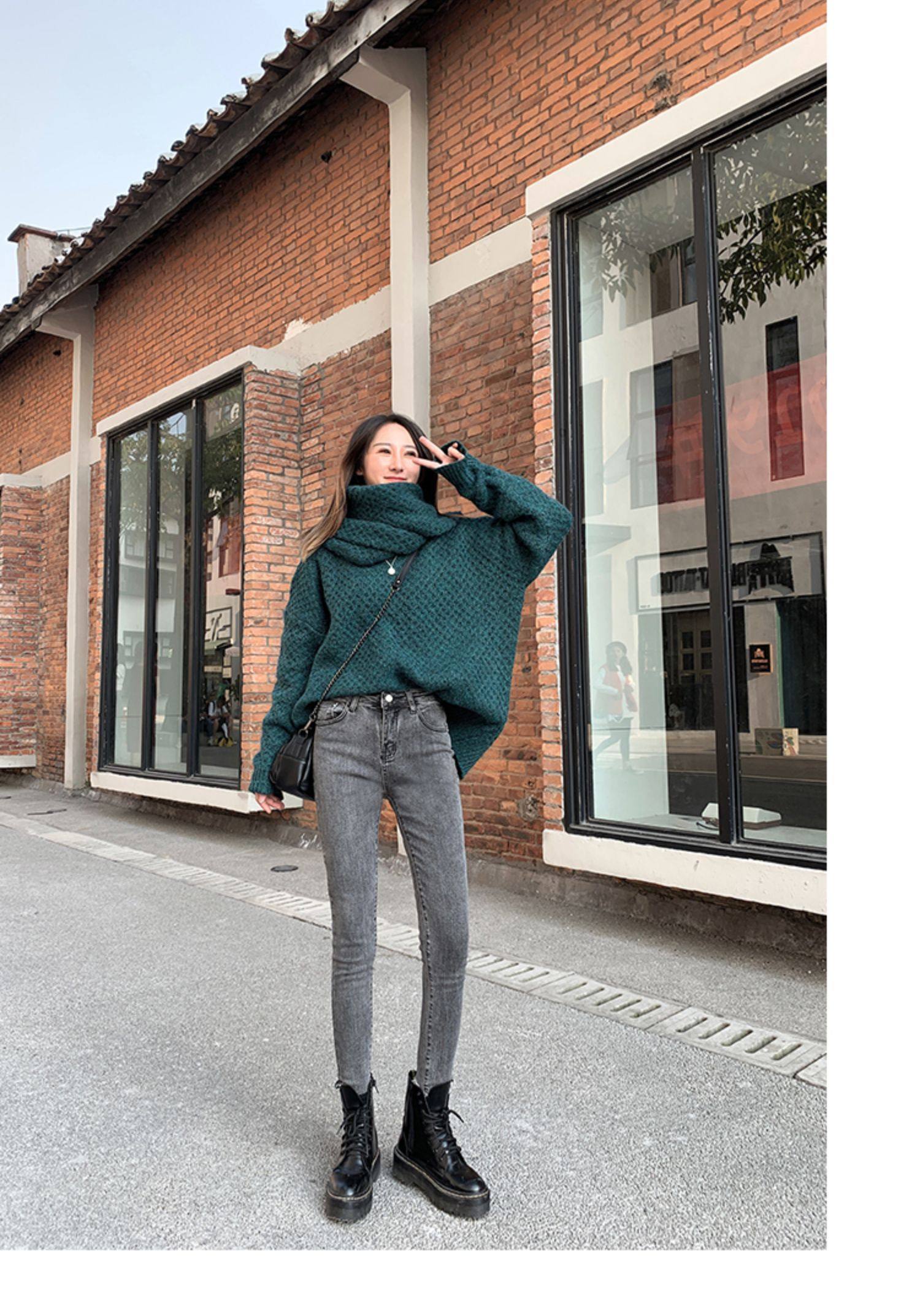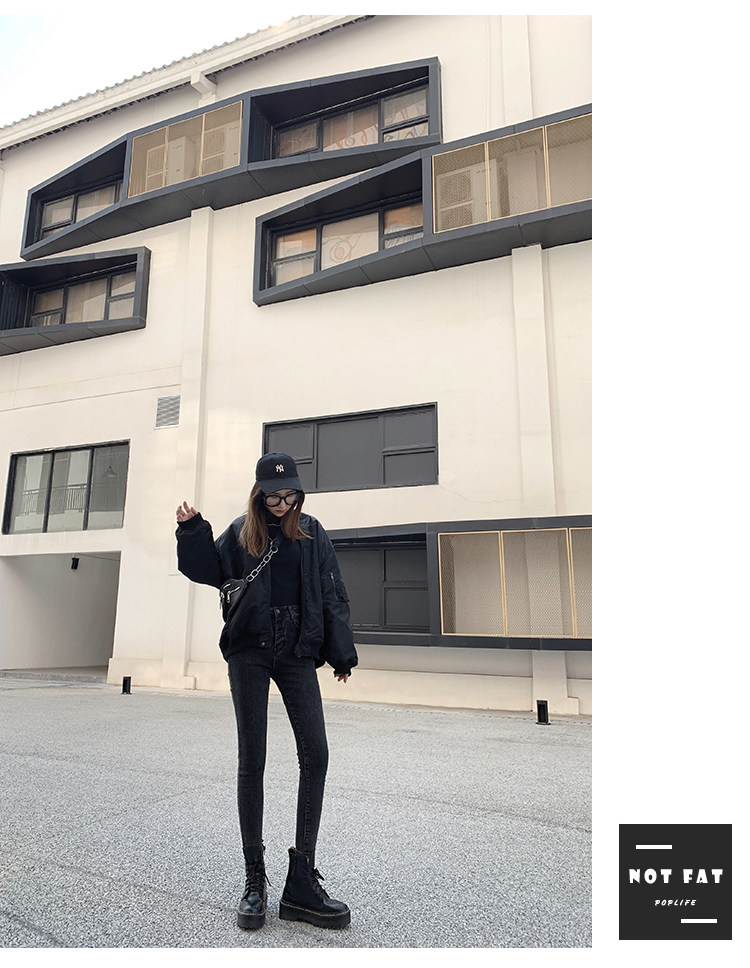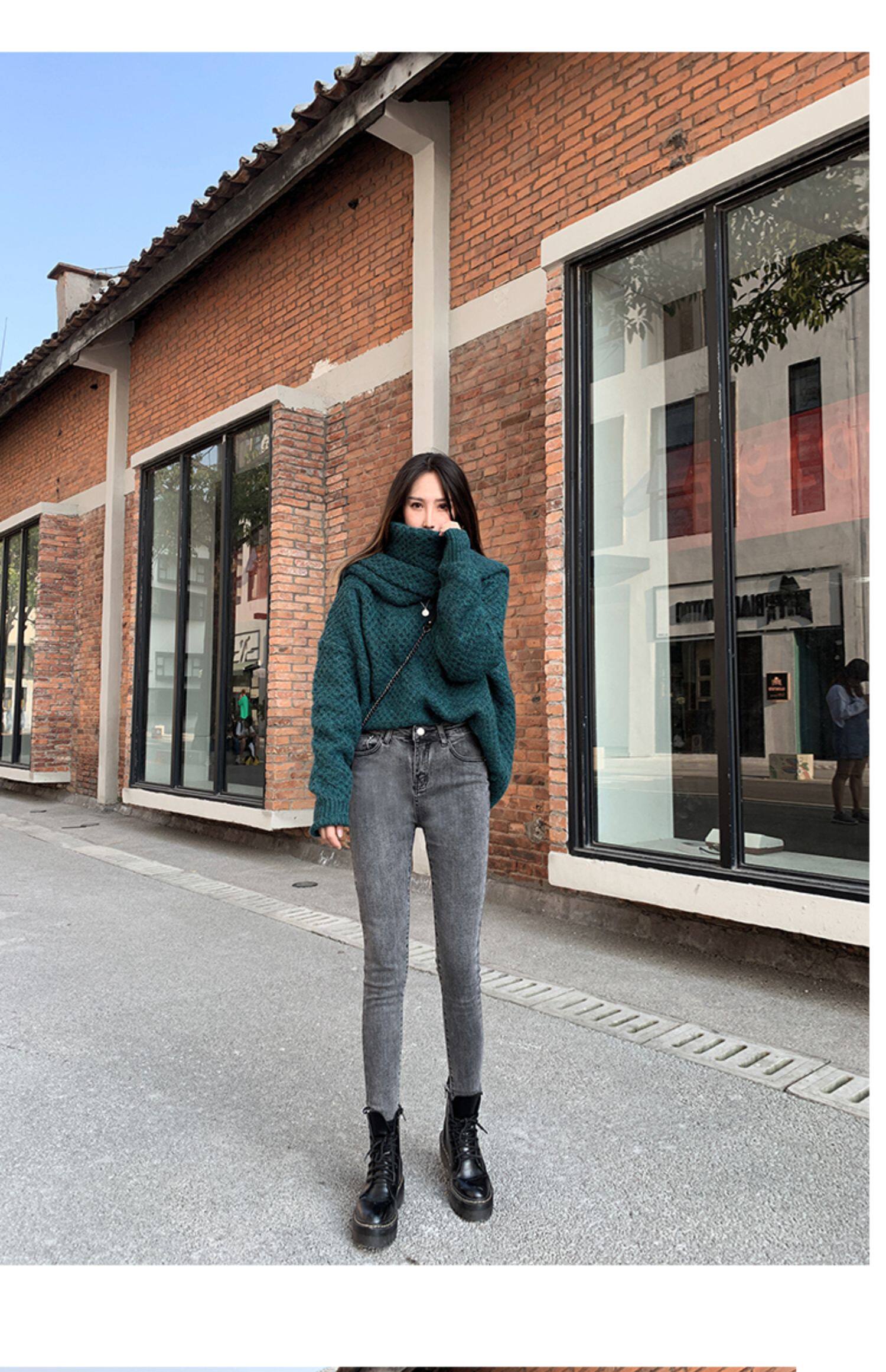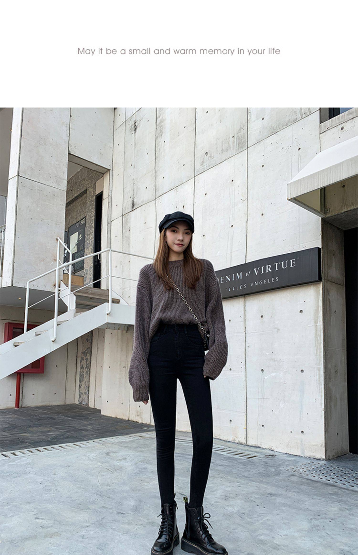2023 그레이 블랙 청바지 여자의 봄과 가을 하이 웨이스트 슬리밍 꽉 발 새로운 가을 바지 얇은 벨벳 기모스토어 가기