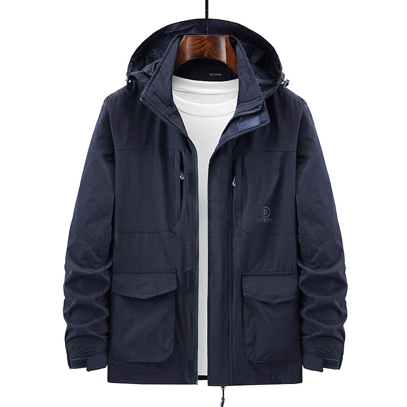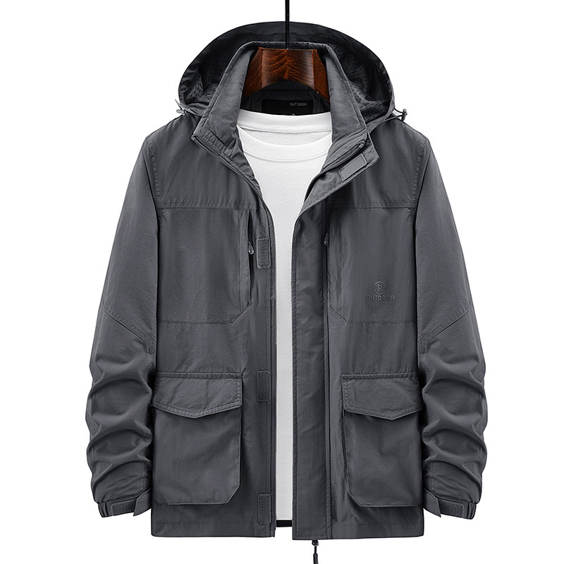秋季夹克男士户外休闲运动防风夹克衫薄款宽松大码多袋工装外套男