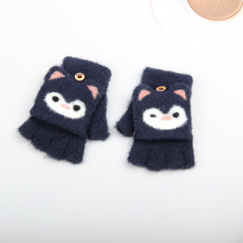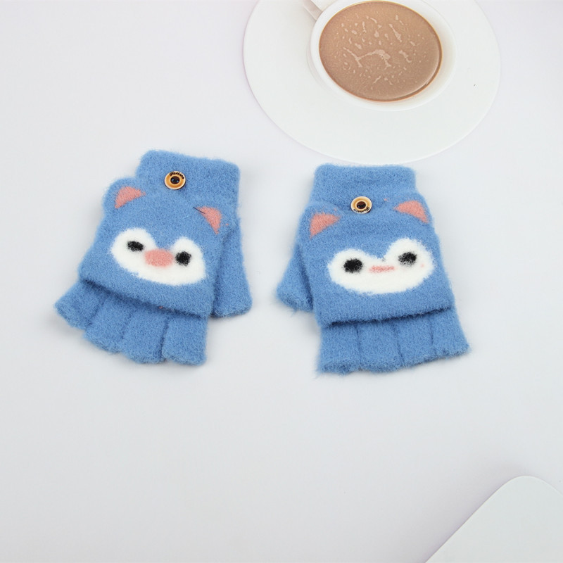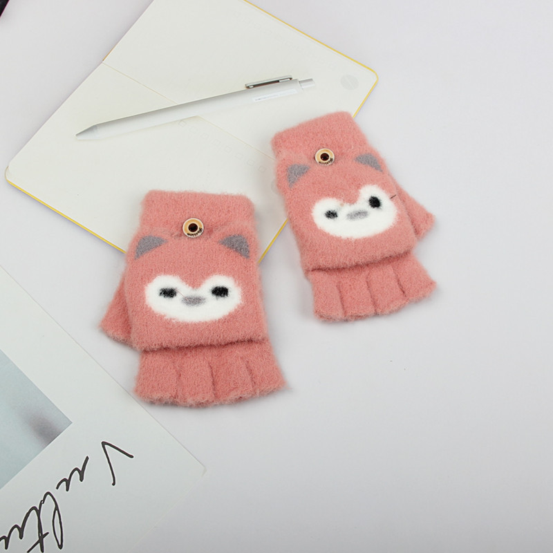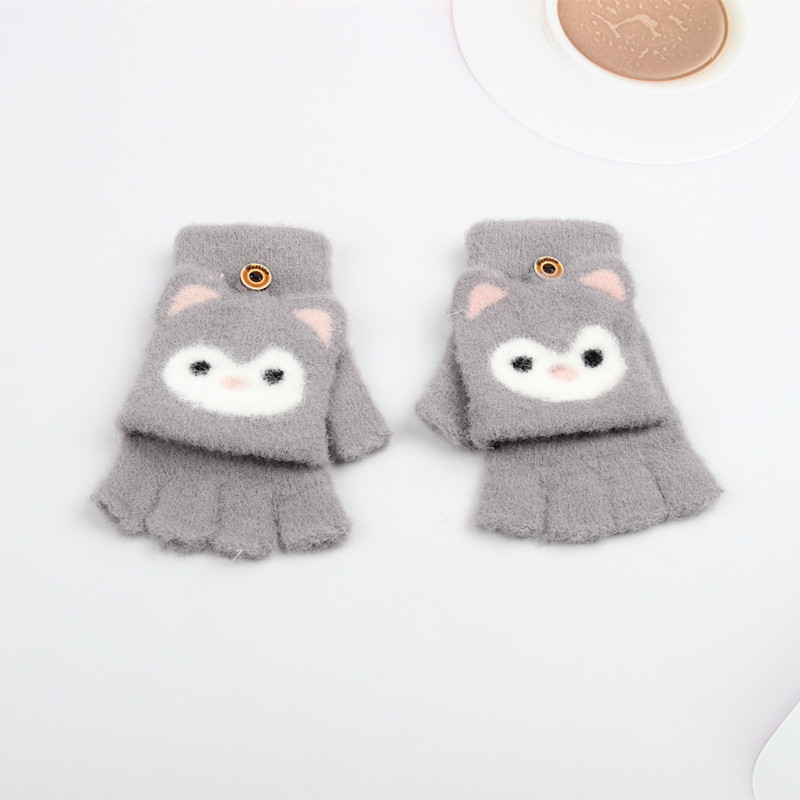 새로운 소년과 소녀 귀여운 따뜻한 플립 장갑 만화 쓰기 두꺼운 어린이 겨울 반 손가락 장갑 소년과 소녀