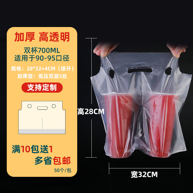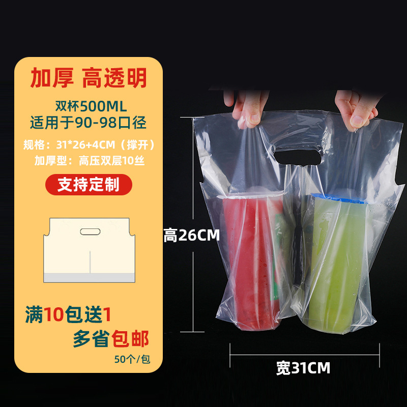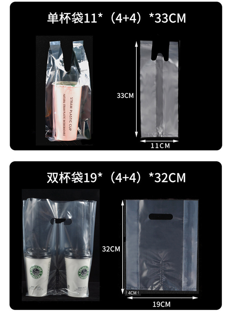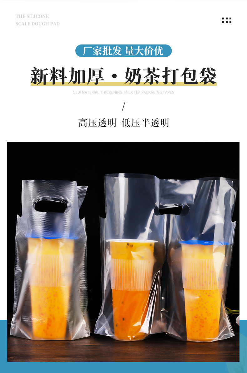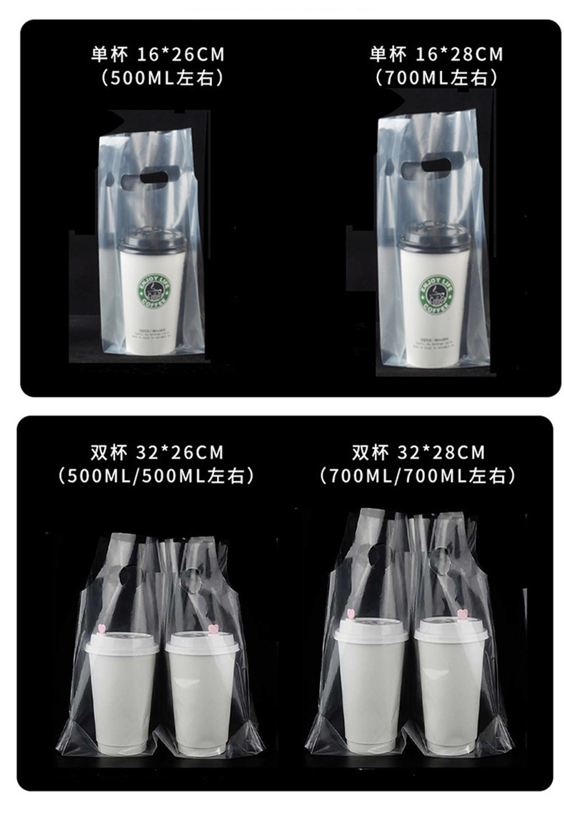 고투명 밀크티 포장백, 싱글/더블컵용, 두꺼운 손잡이형 테이크아웃 음료백, 식품 등급, 생분해성, 맞춤형 로고 가능