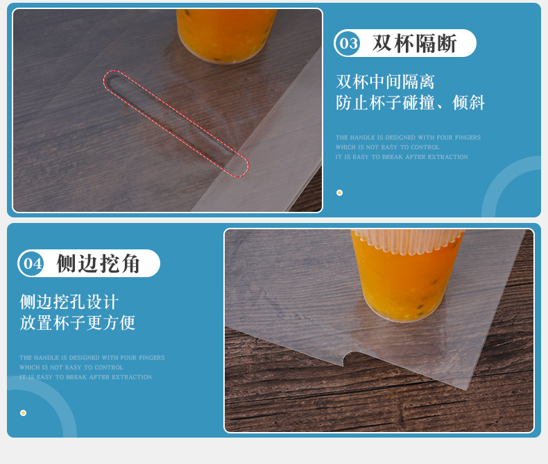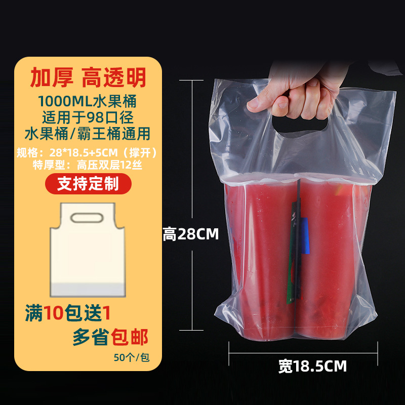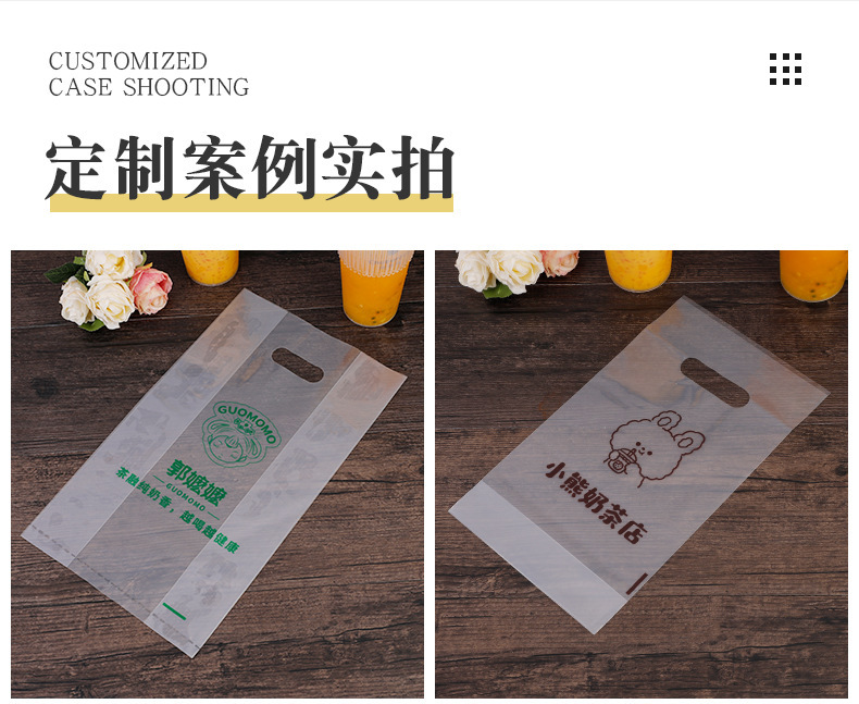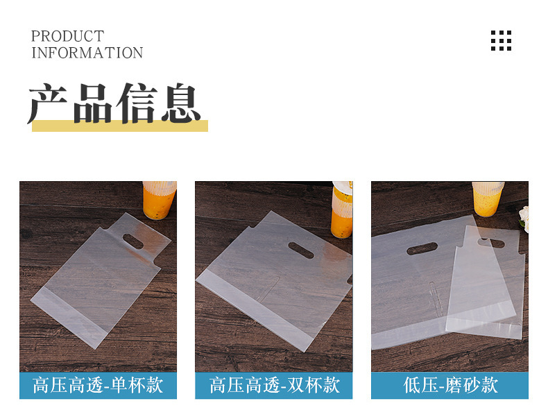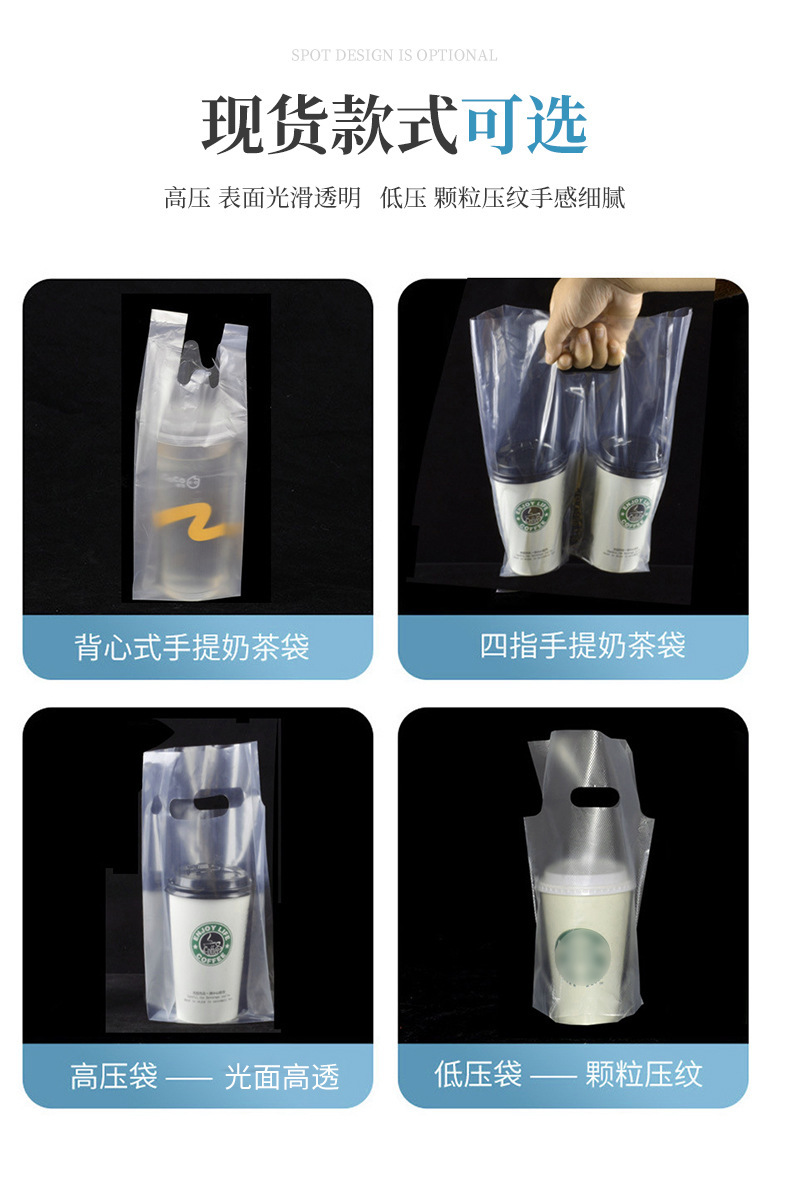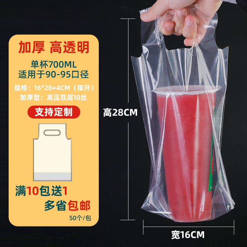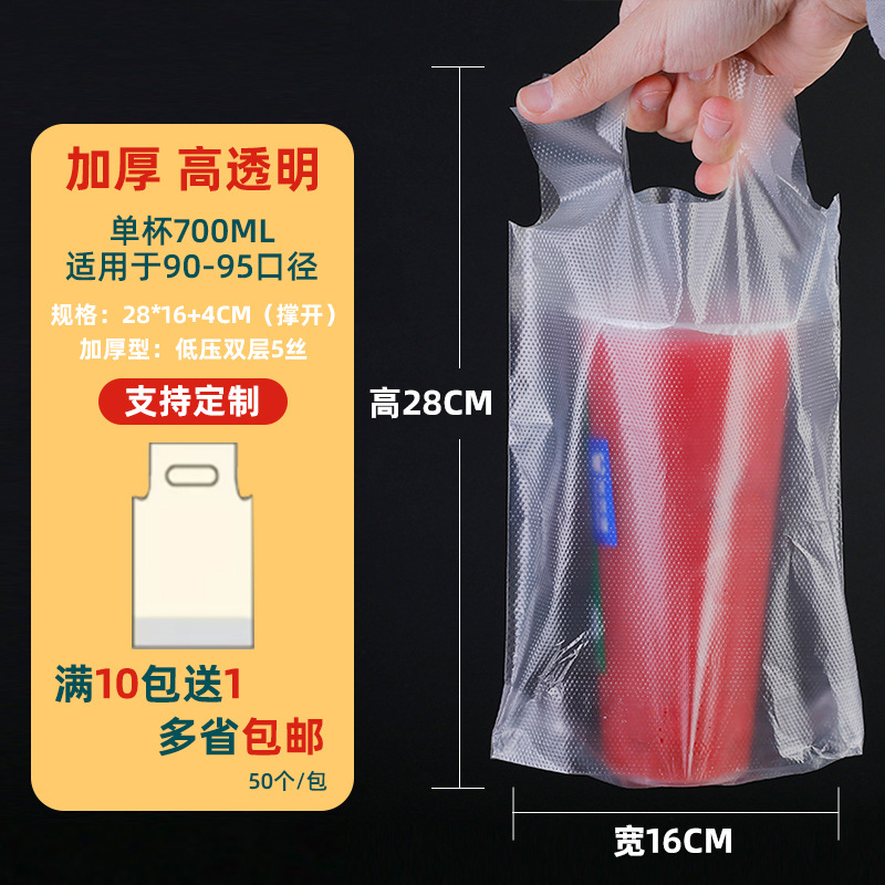 고투명 밀크티 포장백, 싱글/더블컵용, 두꺼운 손잡이형 테이크아웃 음료백, 식품 등급, 생분해성, 맞춤형 로고 가능