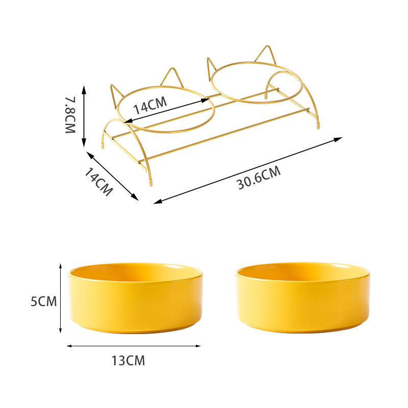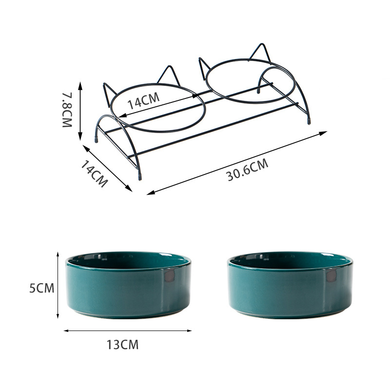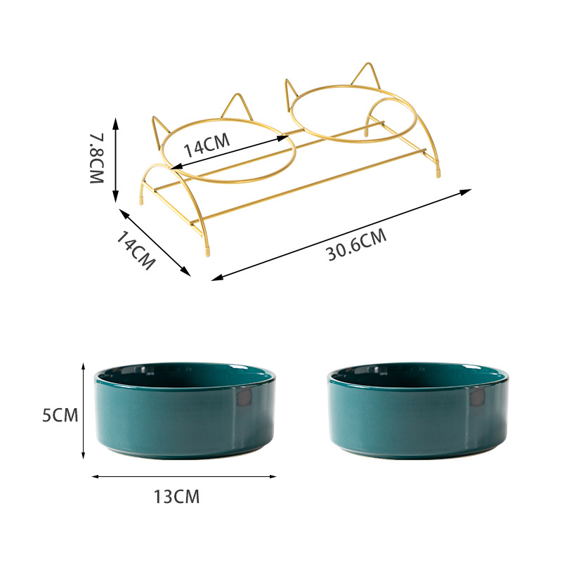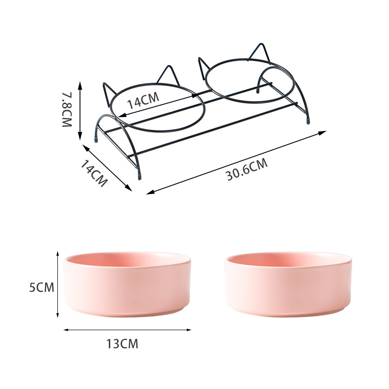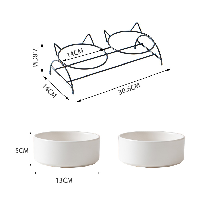 새로운 창조적 인 세라믹 고양이 그릇 고양이 사료 마시는 이중 그릇 개 그릇 기울기 목 보호 건강 청소하기 쉬운