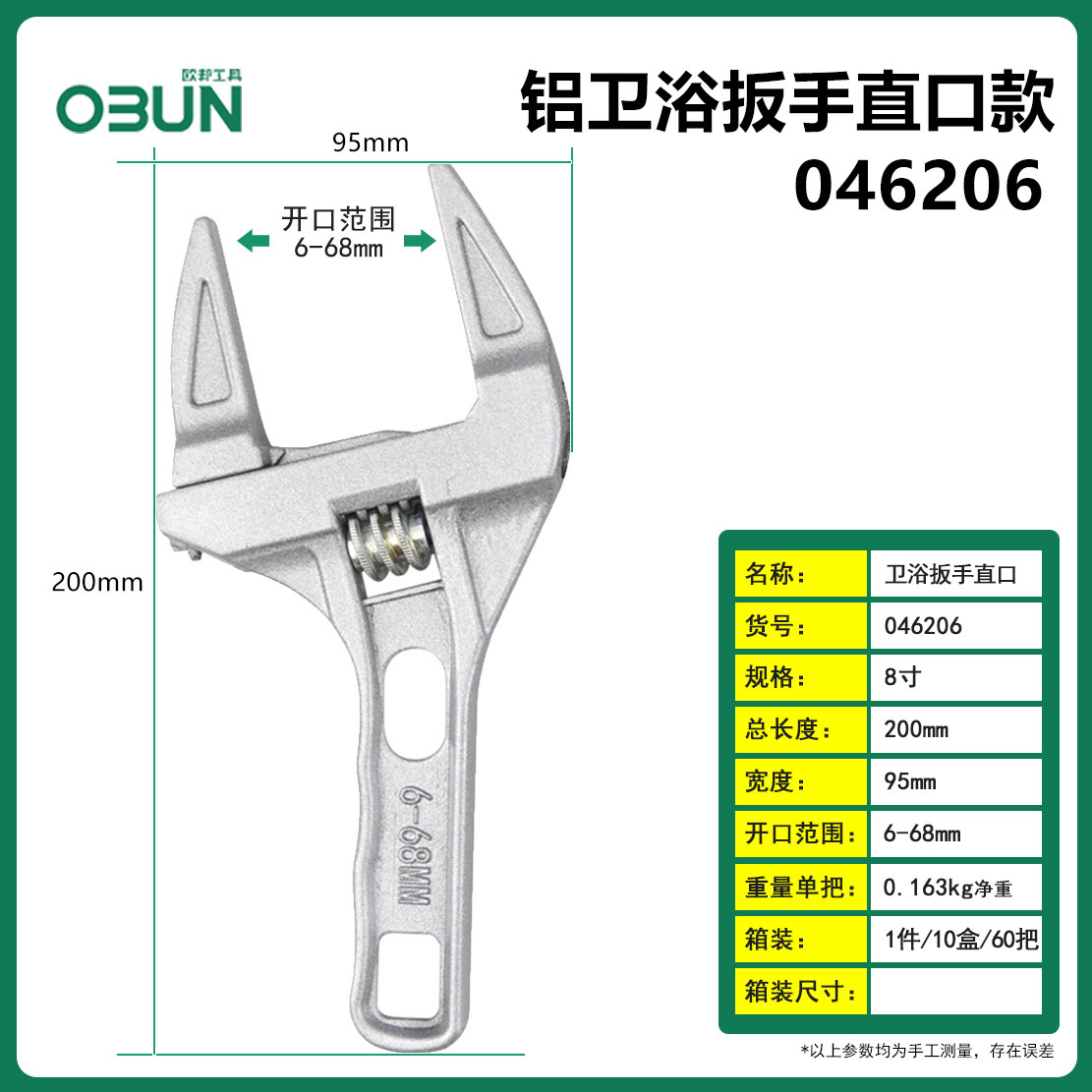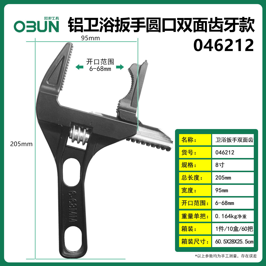 다기능 조절 렌치 욕실 렌치 8 인치 조절 렌치 대형 개구부 6 인치 짧은 손잡이 배관 설치 및 유지 보수 렌치