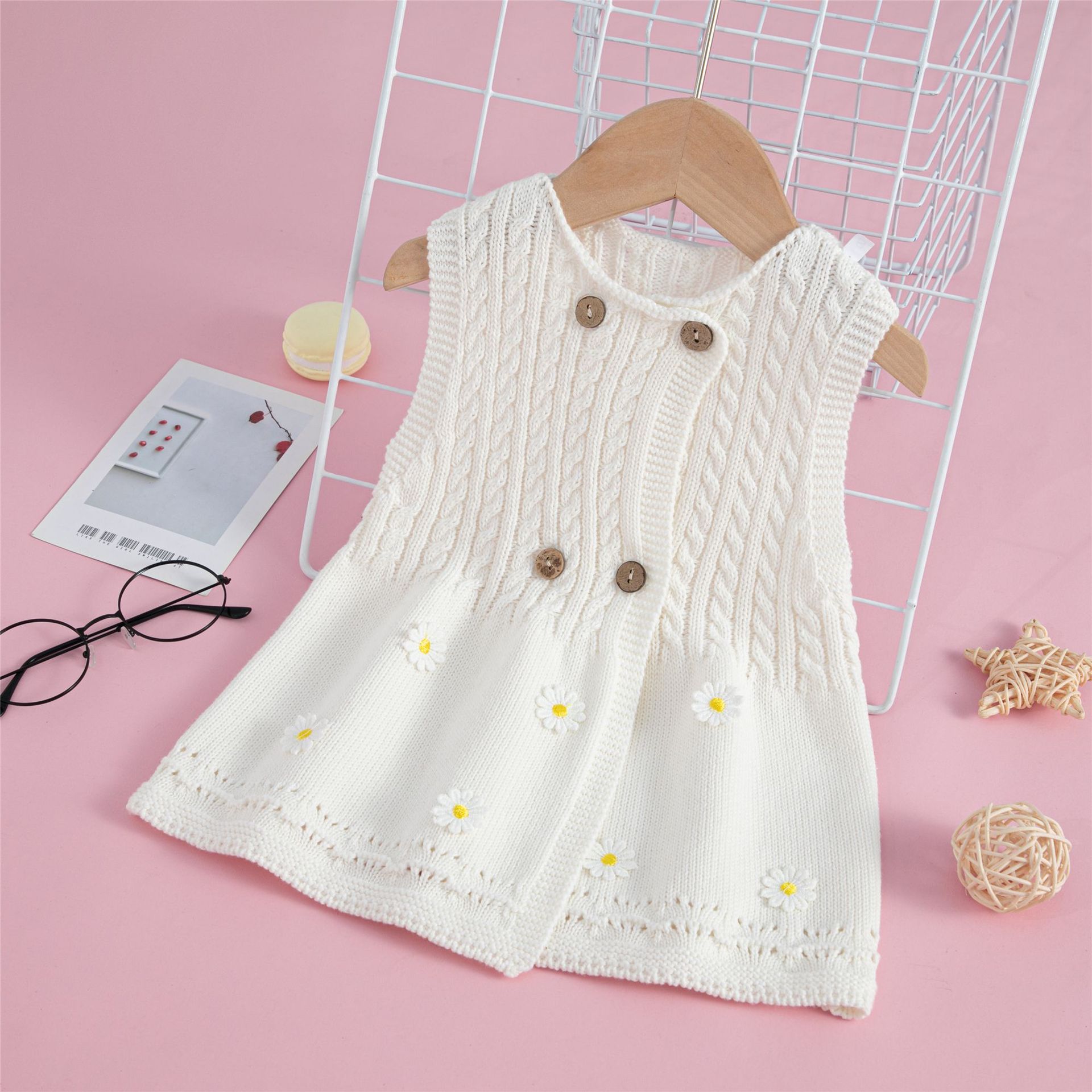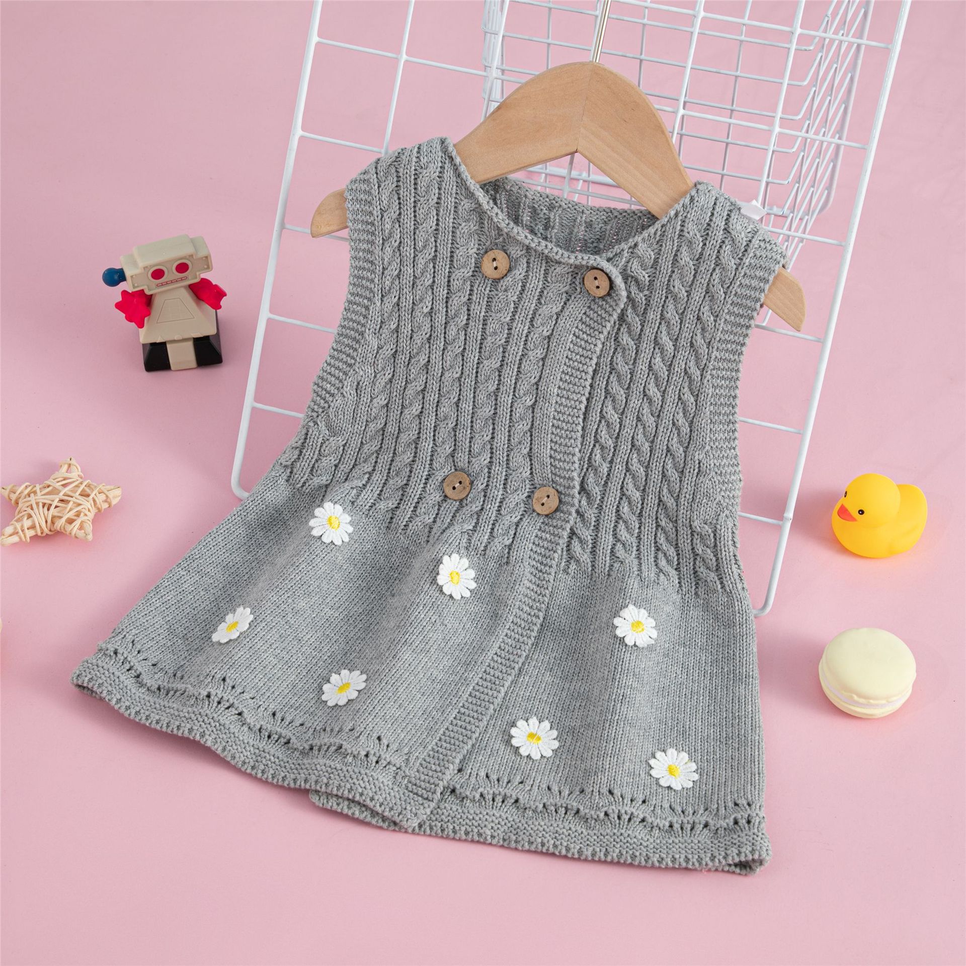 소녀의 봄과 가을 새로운 니트 조끼 원피스 어린이 민소매 스웨터 원피스 아기의 순면 원피스스토어 가기