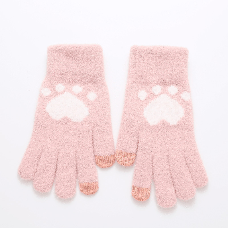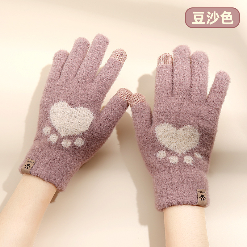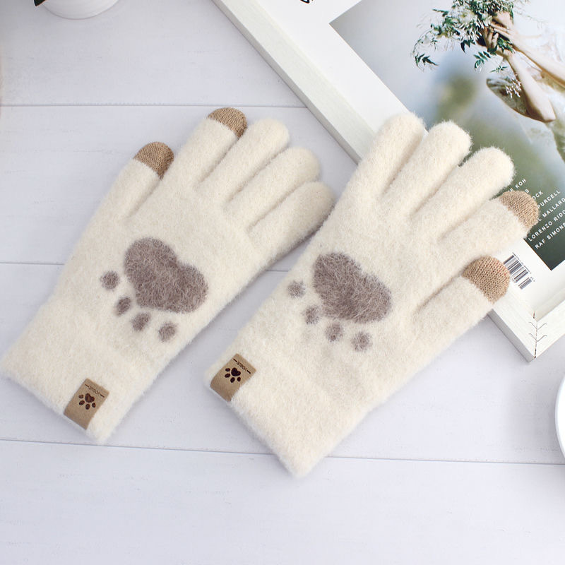 폭발 모조 밍크 벨벳 터치 스크린 장갑 학생 소녀 가을과 겨울 추운 따뜻한 귀여운 곰 발 자카드 니트 장갑스토어 가기