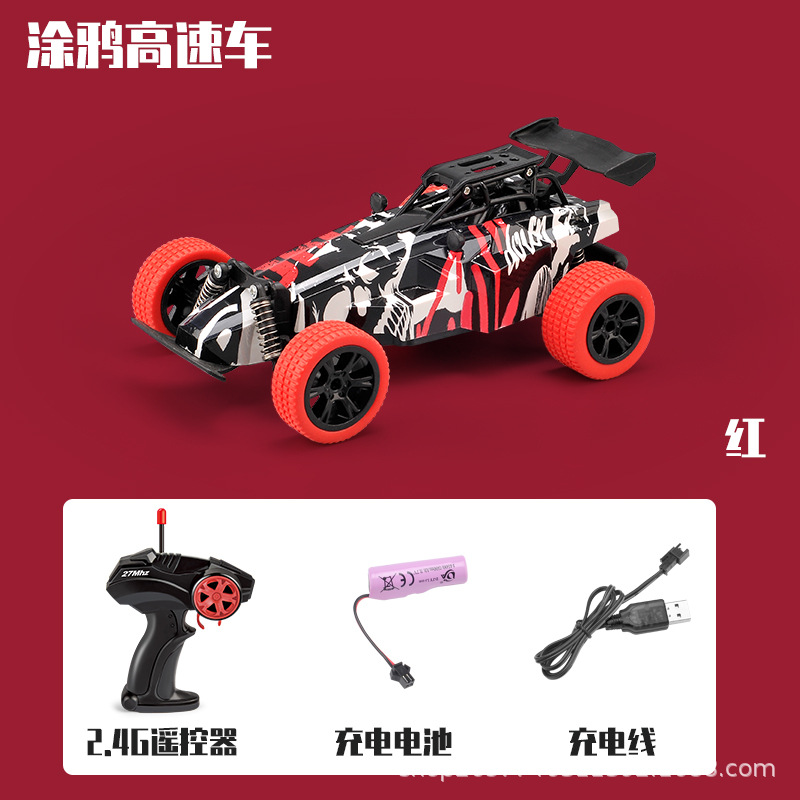 产品名称:遥控涂鸦高速车27M(1:18仿真比例,一款三色混装)
