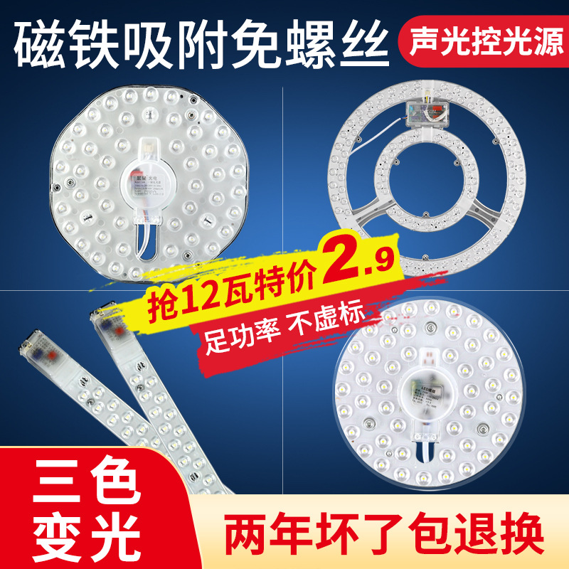 Led 천장 램프 심지 램프 패널 램프 보드 수정 램프 바 원형 에너지 절약 전구 모듈 교체 광원 패치스토어 가기
