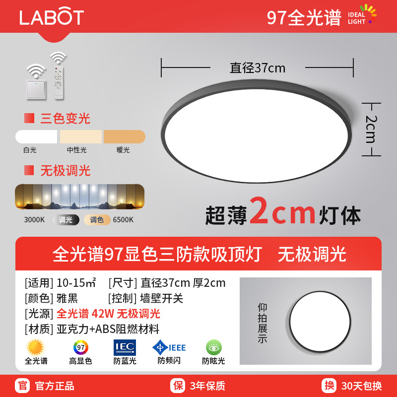 • 3 가지 증거 천장 램프 37cm 전체 스펙트럼 [우아한 검은 색] 36W 무단 디밍