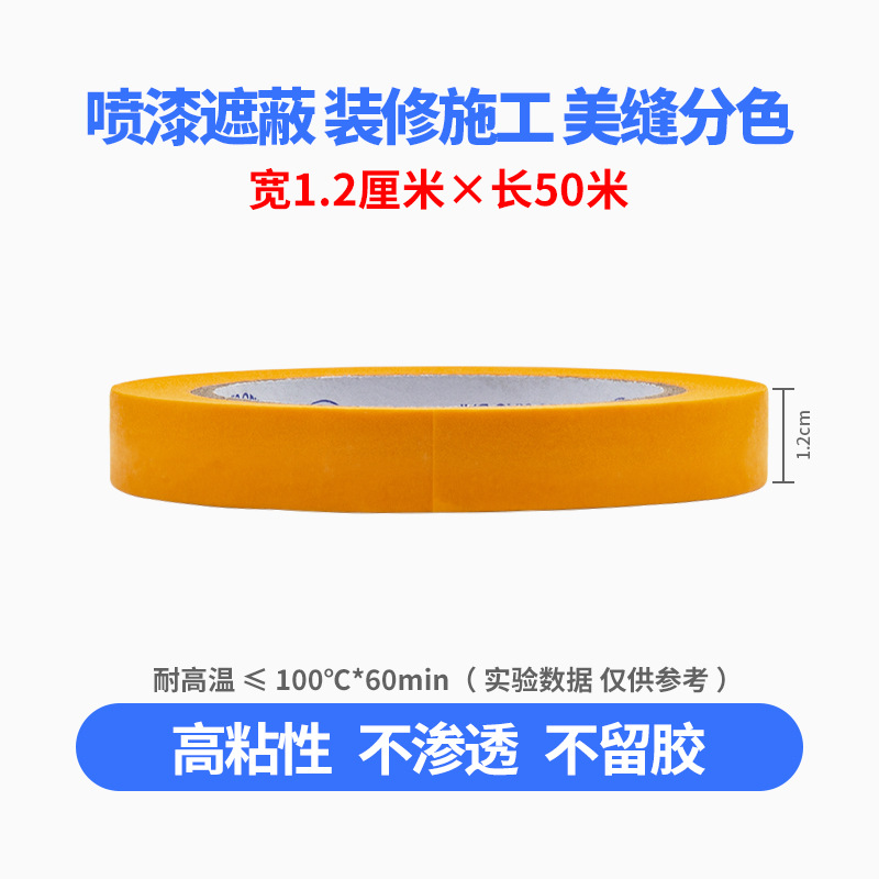 • [고점도] 노란색 와시 테이프(장식 스프레이 페인팅, 솔기 색상 분리 및 마킹), 길이 50m*너비 1.2cm [1박스에 225롤]