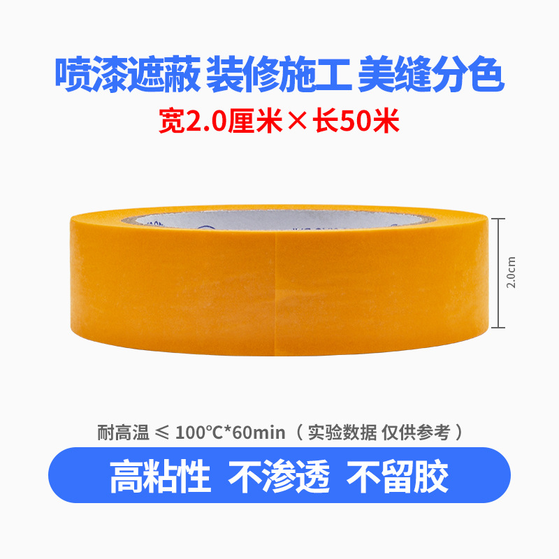 • [고점도] 노란색 와시 테이프(장식 스프레이 페인팅, 솔기 색상 분리 및 마킹), 길이 50m*너비 2cm [1박스에 135롤]