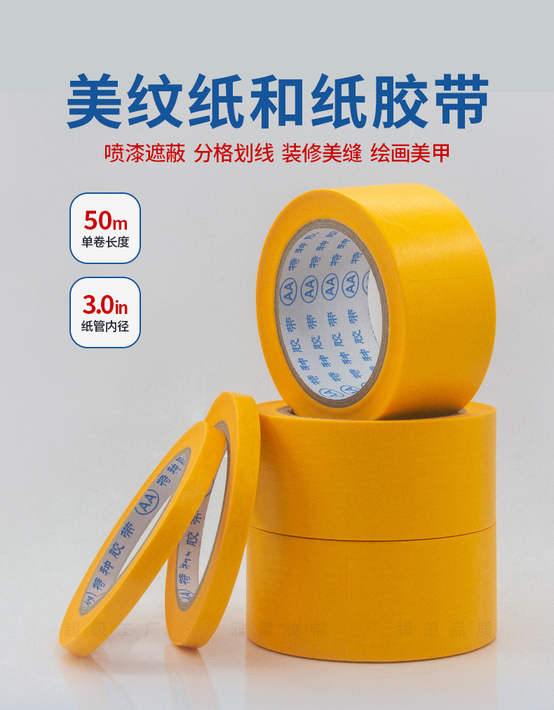 Yaping 고접착 종이 테이프 스프레이 페인트 마스크 종이 장식 색상 장식 종이 재고 도매 노란색과 종이 테이프스토어 가기