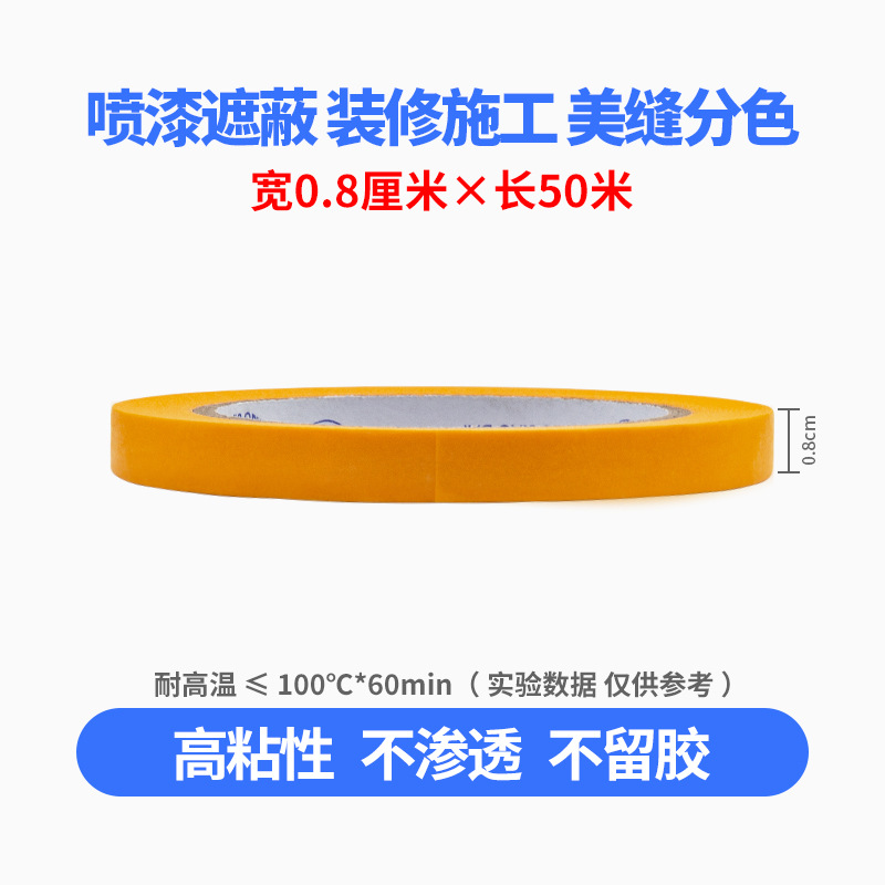 • [고점도] 노란색 와시 테이프(장식 스프레이 페인팅, 솔기 색상 분리 및 마킹), 길이 50m*너비 0.8cm [1박스에 324롤]