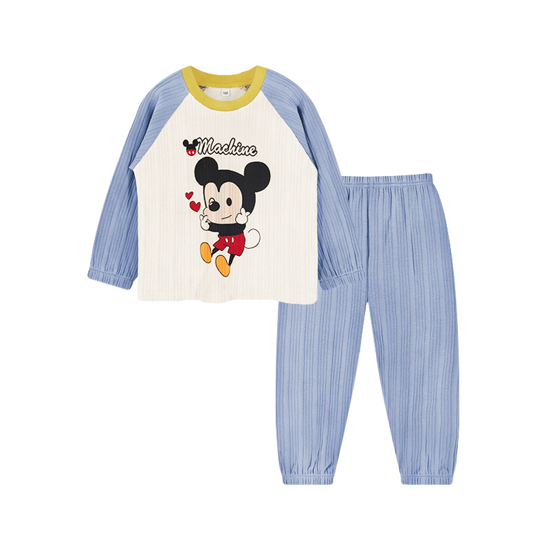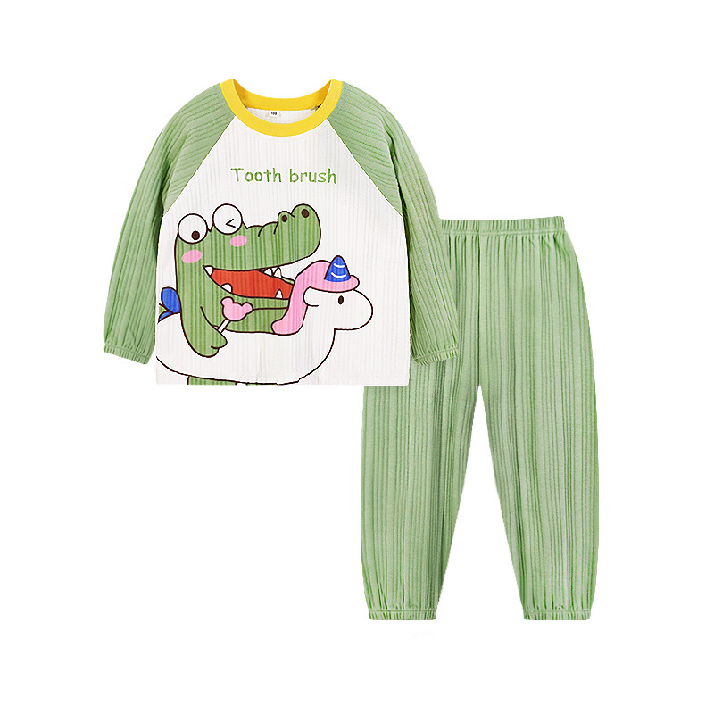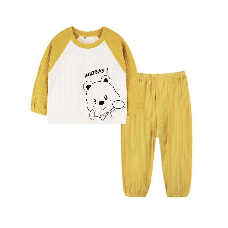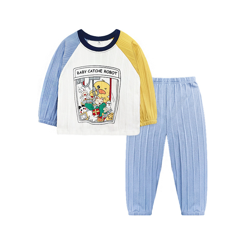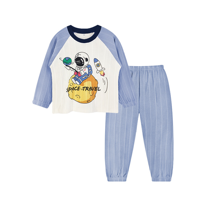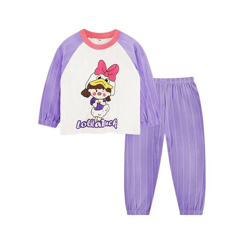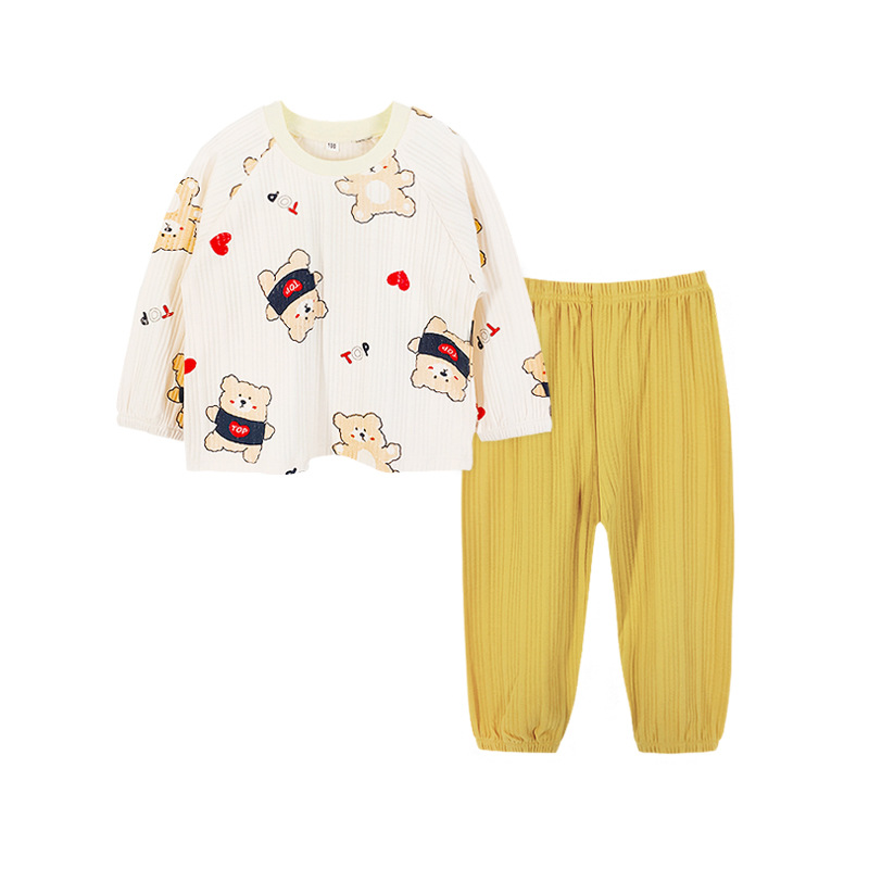 CUHK 어린이 스트립 면 속옷 세트 어린이 가을과 겨울 면 긴 소매 기본 잠옷 130.140.150 크기