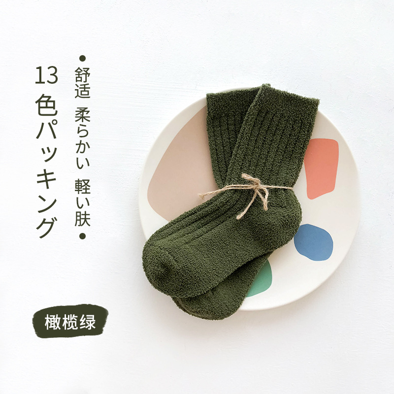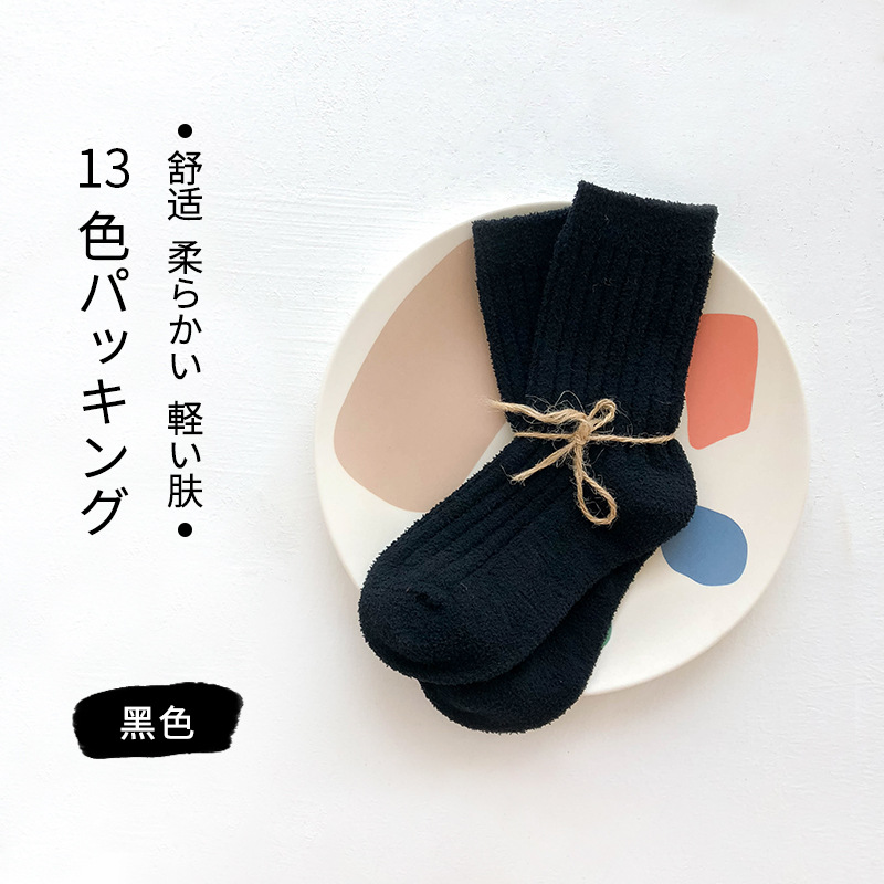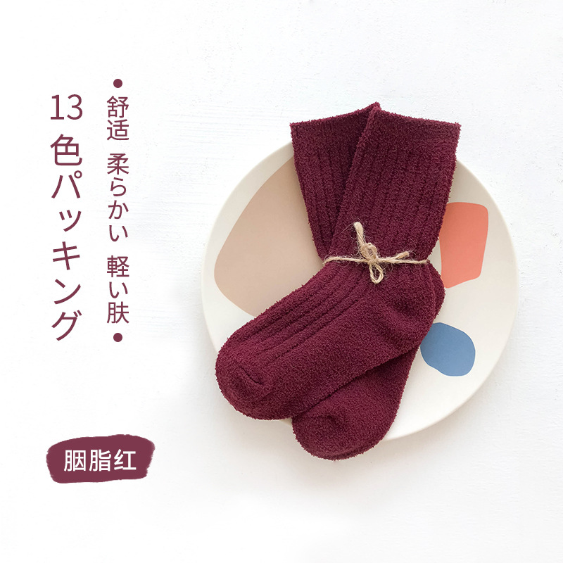 Z198 아동용 양말 도매 2025 가을 겨울 단색 반벨벳 아기 양말 두꺼운 보온 남녀 공용 양말스토어 가기