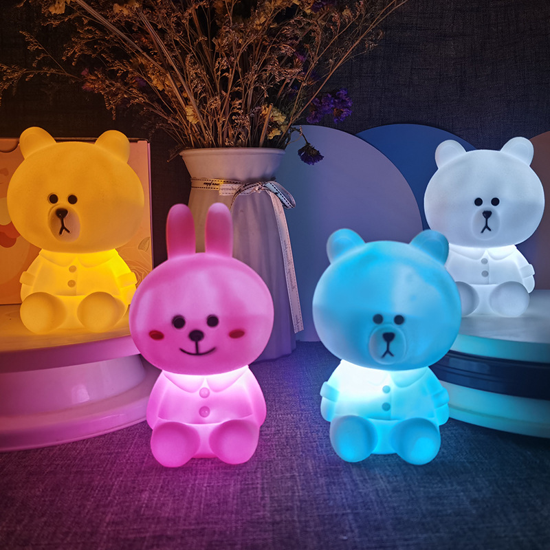 야시장 판매용 인스 어린이 테이블 램프 곰돌이 코니 토끼 LED 무드등 창의적인 침대 옆 만화 토끼 분위기 조명