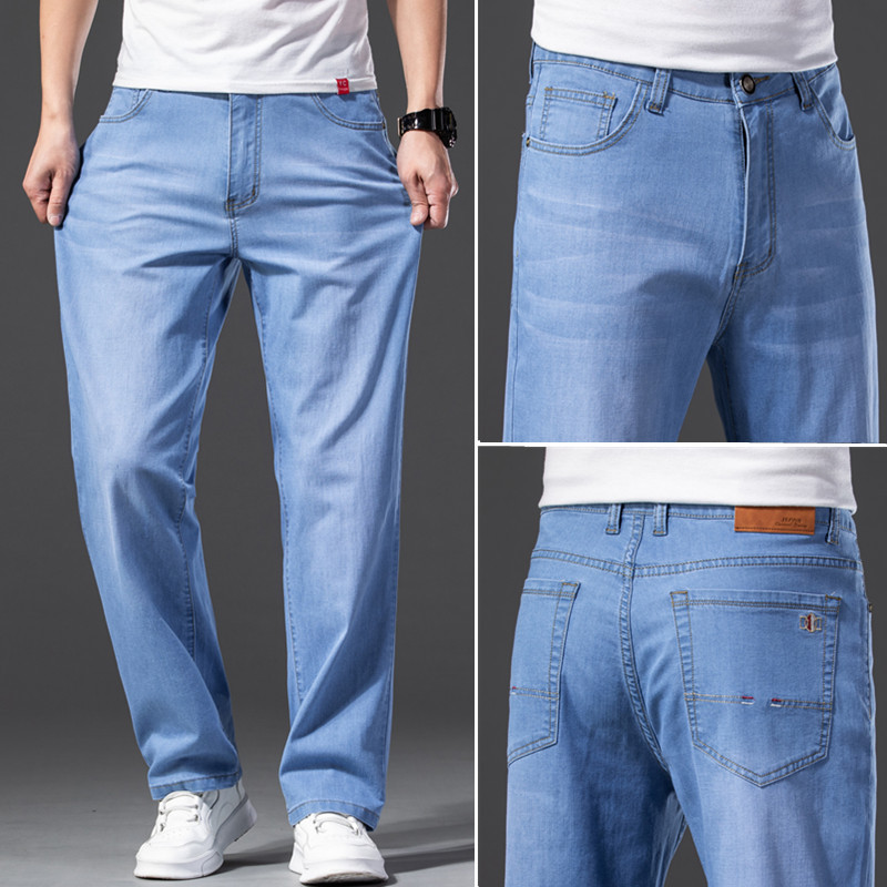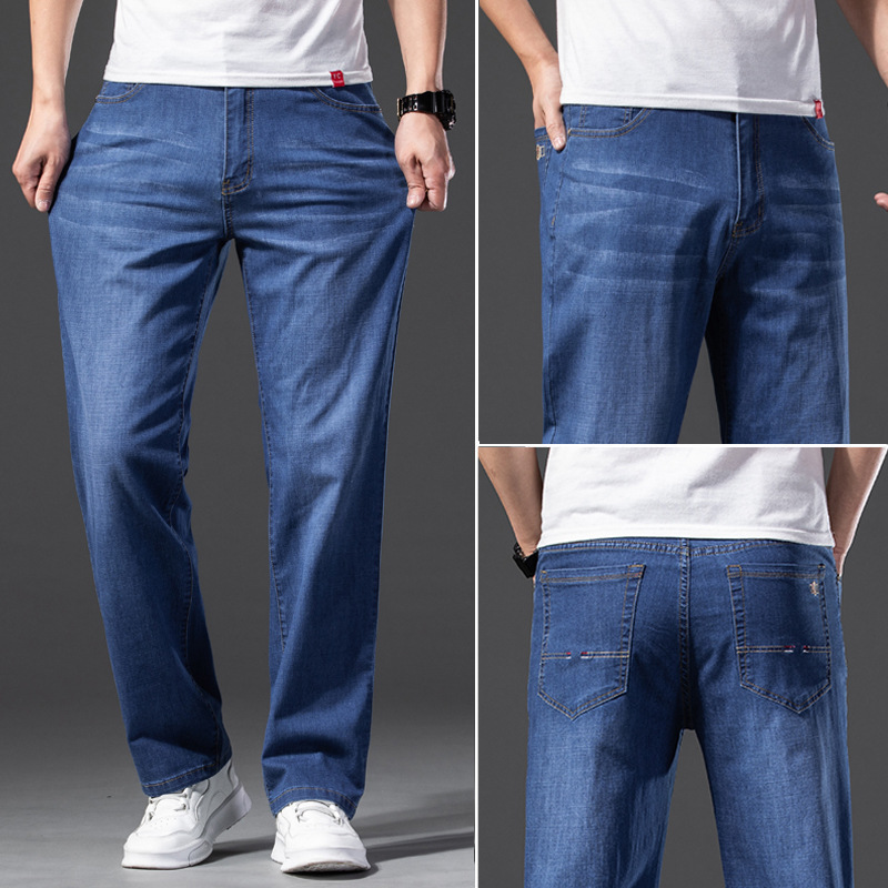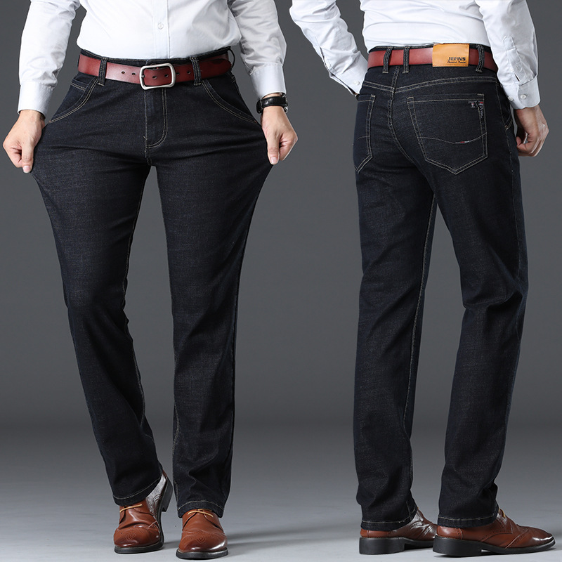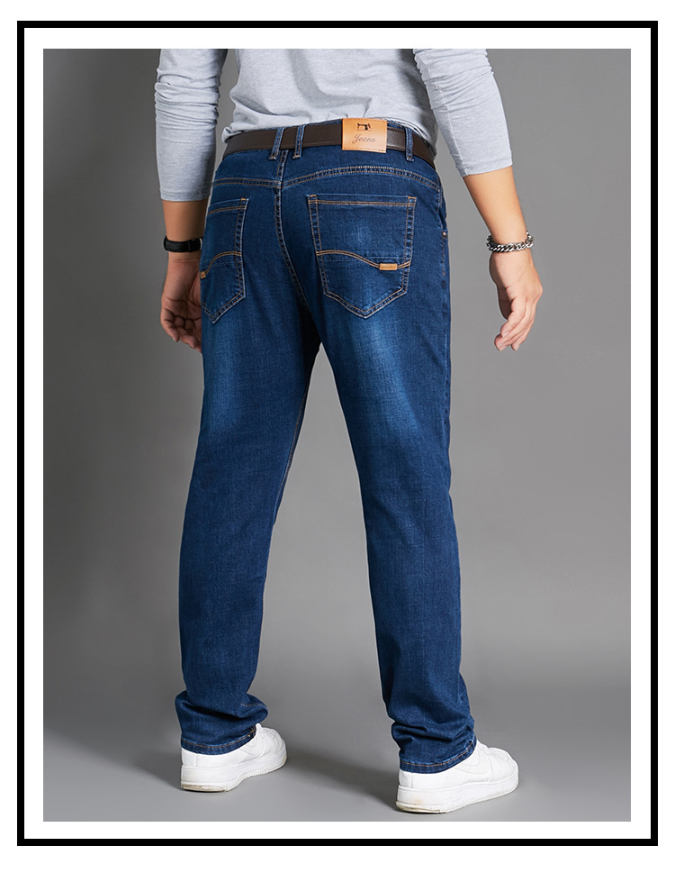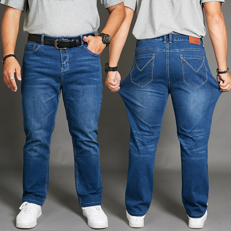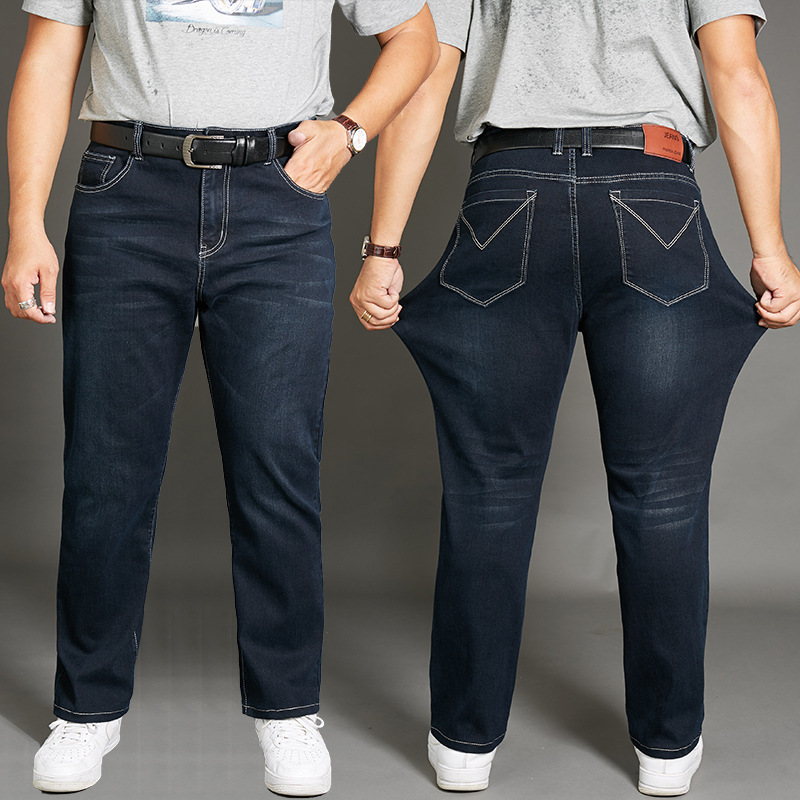 하이 스트레치 청바지 남성용 느슨한 스트레이트 특대형 가을 특대형 사이즈 아빠 하이 웨이스트 팻 바지 42