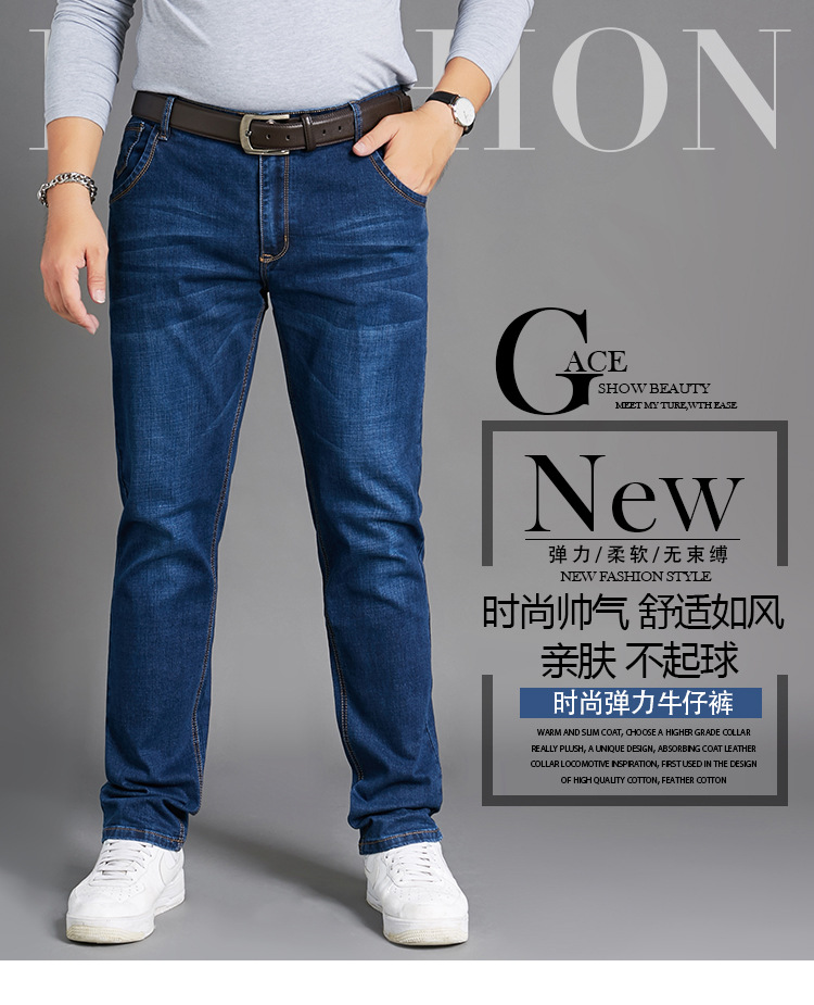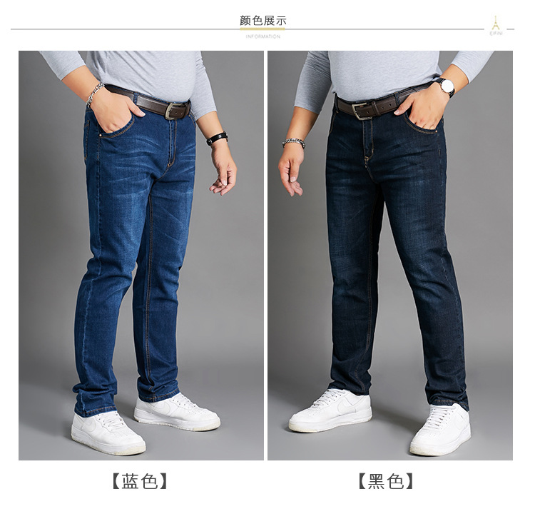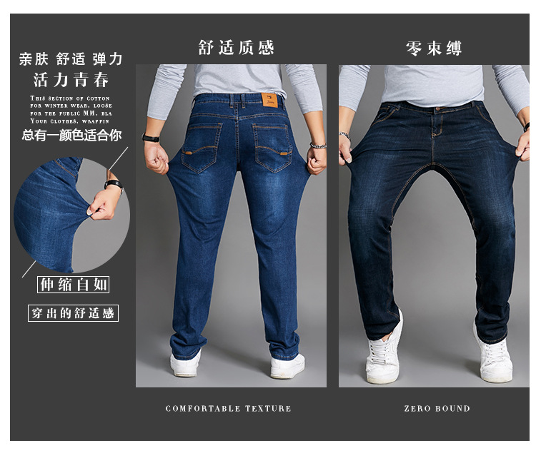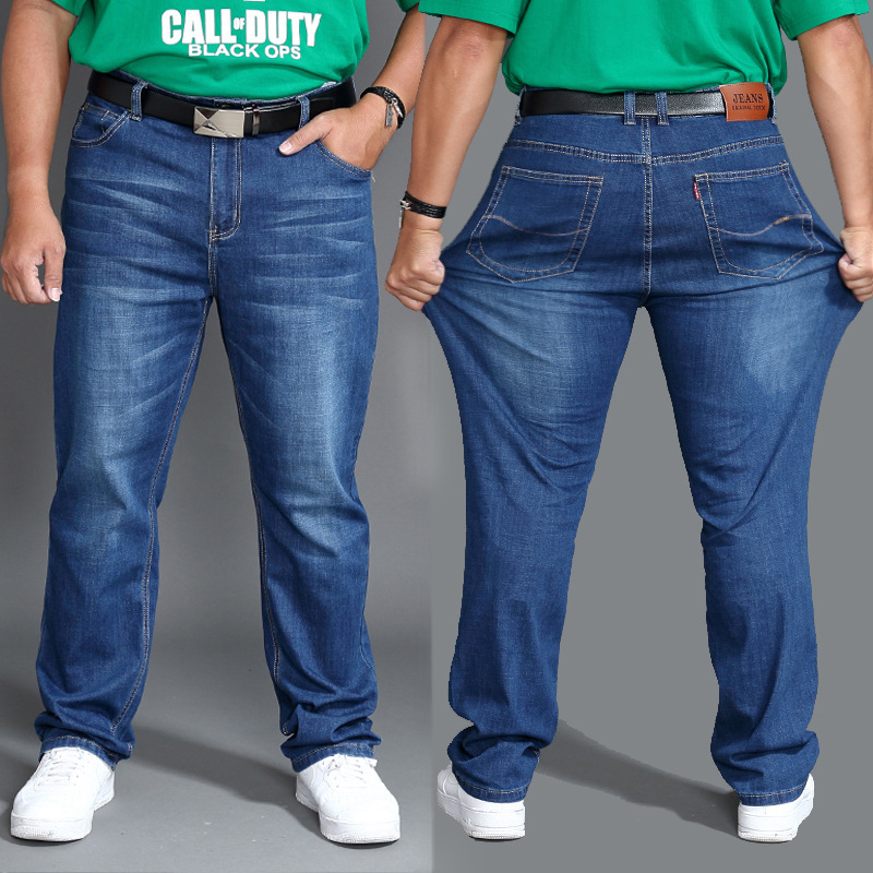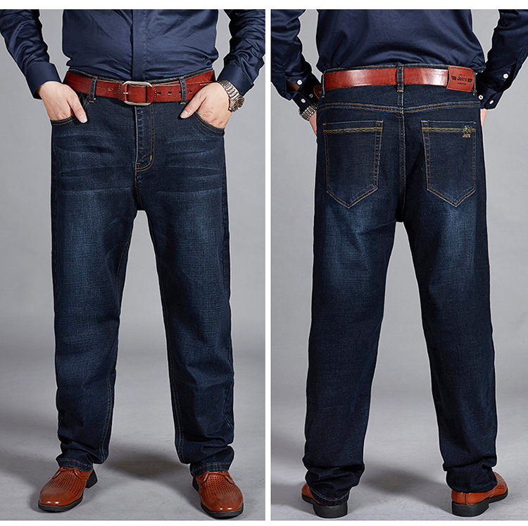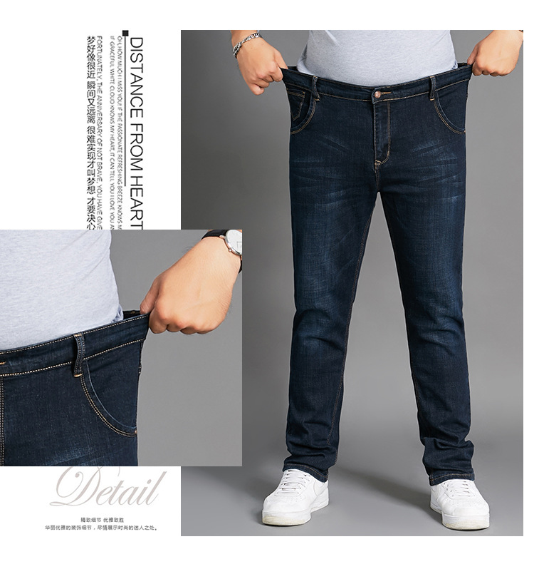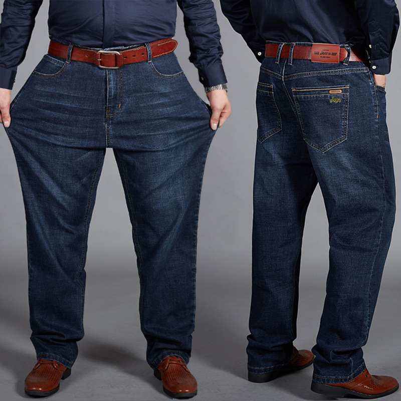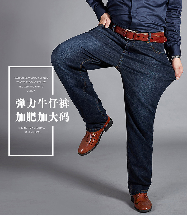 하이 스트레치 청바지 남성용 느슨한 스트레이트 특대형 가을 특대형 사이즈 아빠 하이 웨이스트 팻 바지 42스토어 가기