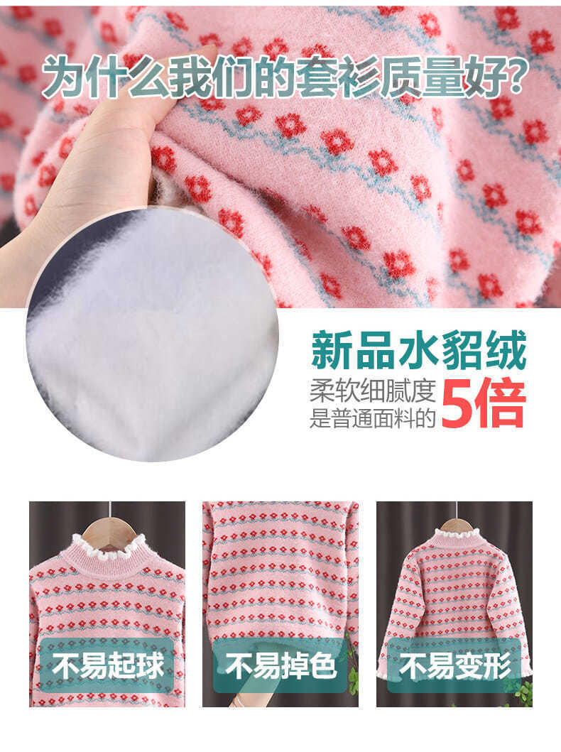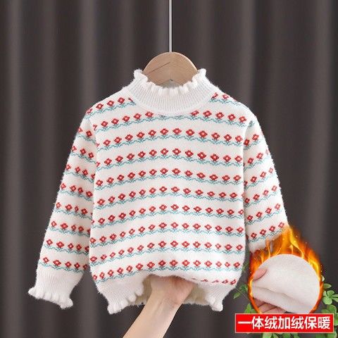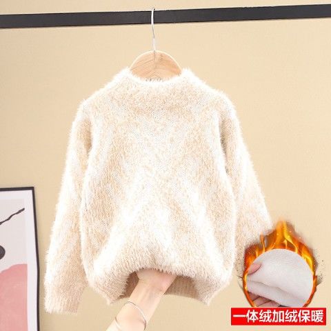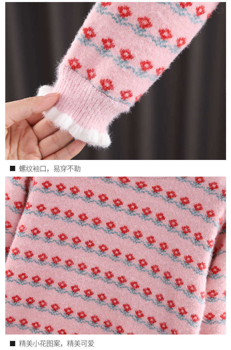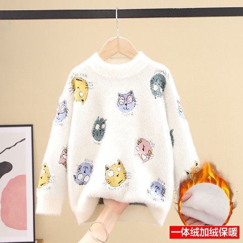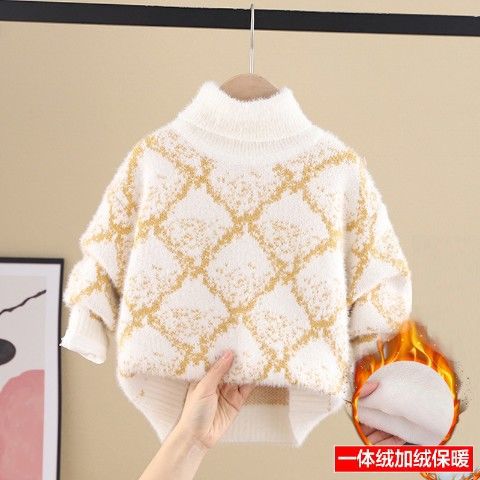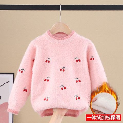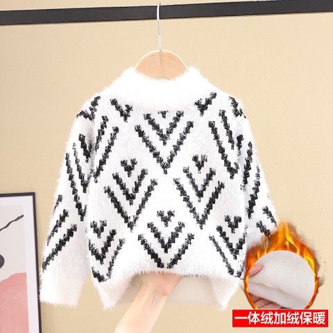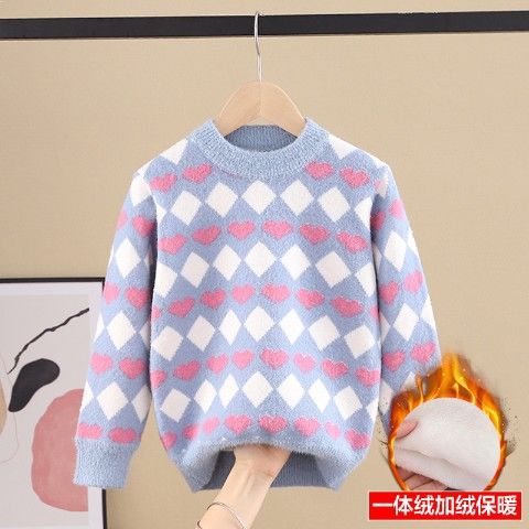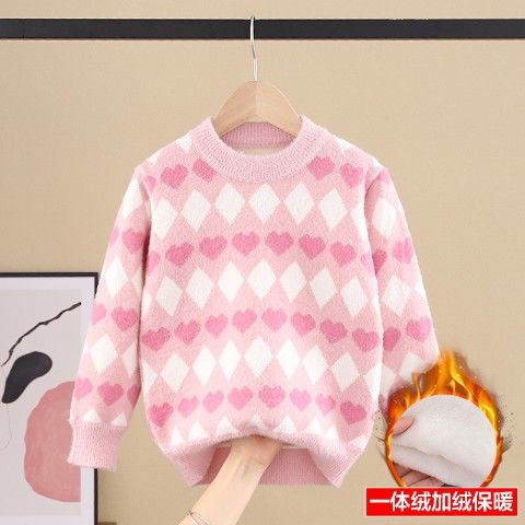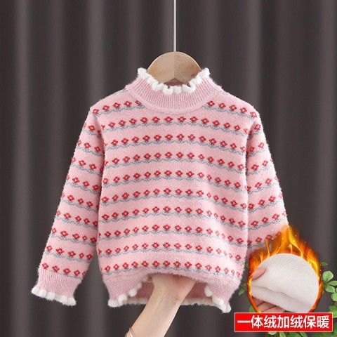 여아용 스웨터 풀오버, 벨벳 안감, 두꺼운 가을 겨울 신상품, 밍크 벨벳 스타일리시한 이너 니트웨어, 아동용 스웨터스토어 가기